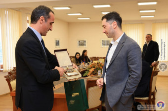 In the framework of the visit, the Georgian delegation also visited the Military Academy named after Vazgen Sargsyan of the MoD, where they were briefed on the educational programs and toured the classrooms.