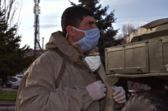 26 March, 2020 18:07The preventive medical measures were carried out in the military units of the fifth military formation. The servicemen were informed about the means of protection against the coronavirus infection. They were also instructed to strictly observe the prevention and hygiene rules.
