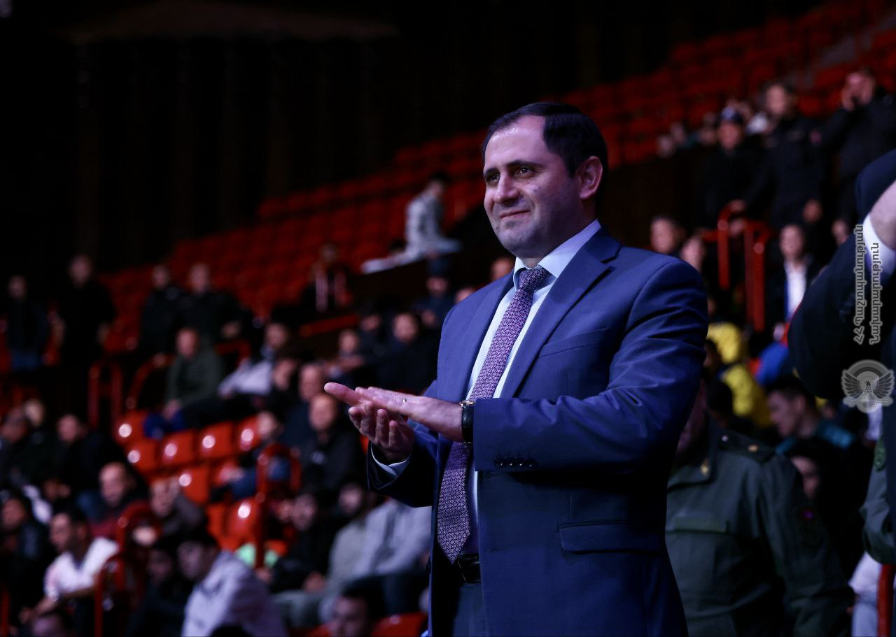 21 Նոյեմբերի, 2024 22:52Պաշտպանության նախարար Սուրեն Պապիկյանը հետևել է Երևանում անցկացվող Ըմբշամարտի զինվորականների աշխարհի 37-րդ առաջնության երկրորդ օրվա՝ նոյեմբերի 21-ի եզրափակիչ գոտեմարտերին։