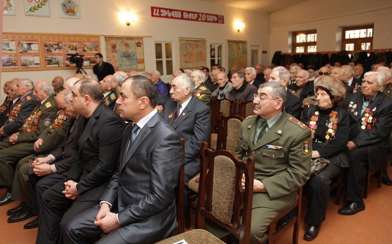 Դիմելով պատերազմի վետերաններին` պաշտպանության նախարարը մասնավորապես ասել է. «Պատահական չէ, որ բանակի 20-ամյակին նվիրված միջոցառումների շարքը սկսվում է այս հաստատությունից` մեր հայրերի, պապերի, մեր մեծերի օջախից, որոնցից մենք ժառանգել ենք սխրագործություններ, հերոսական ճանապարհ, ժառանգել ենք այն մեծ մարտական ոգին, որն էլ հիմք է հանդիսացել մեզ պարտադրված պատերազմում հաղթանակներ տանելու համար: Այսօր Հայաստանի Հանրապետության զինված ուժերը պատվով կատարում են ձեր պատգամները, հարգելի՛ վետերաններ: Նրանք պատվով պաշտպանում են մեր հայրենիքի սահմանները, մեր ժողովրդի անվտանգությունը ու ցանկացած պահի պատրաստ են դիմակայել այն բոլոր սպառնալիքներին, որ գոյություն ունեն Հայաստանի Հանրապետության և Լեռնային Ղարաբաղի Հանրապետության շուրջ: Իհարկե, մենք ուրախանում ենք հաջողություններով, բայց միաժամանակ լրջորեն աշխատում ենք բանակում առկա թերությունների վերացման ուղղությամբ»: