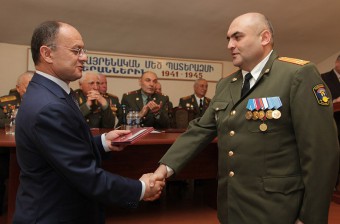 Միջոցառման վերջում ՀՀ Զինված ուժերի կազմավորման 20-րդ տարեդարձի առթիվ` Սեյրան Օհանյանը Հայրենական մեծ պատերազմի մի խումբ վետերանների, ազատամարտիկների և զինծառայողների պարգևատրել է «Հայաստանի Հանրապետության Զինված ուժեր. 20 տարի» հոբելյանական մեդալով: