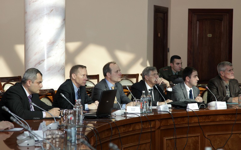 Այցի առաջին օրը ՀՀ պաշտպանության նախարարության վարչական համալիրում կազմակերպված ընդլայնված կազմով քննարկումներն անցան պաշտպանության նախարար Սեյրան Օհանյանի և կրթության և գիտության նախարար Արմեն Աշոտյանի ղեկավարությամբ: Միջազգային փորձագիտական խմբի և ԱՄՆ փոխդեսպան Բրյուս Դոնահյուի մասնակցությամբ կայացած այս հանդիպման ընթացքում ՀՀ ՊՆ Ազգային ռազմավարական հետազոտությունների ինստիտուտի պետ, պաշտպանության նախարարի խորհրդական, գեներալ-մայոր, դոկտոր Հայկ Քոթանջյանը ներկայացրեց ՀՀ ՊՆ Ազգային ռազմավարական հետազոտությունների ինստիտուտի կերպափոխմամբ ՀՀ ՊՆ պաշտպանական ազգային համալսարանի ստեղծման նախագիծը, որի վերաբերյալ ներկաները տվեցին իրենց հարցերն ու մեկնաբանությունները: ՀՀ պաշտպանության նախարար Սեյրան Օհանյանը նշեց, որ Հայաստանը կարևորում է ռազմավարական մակարդակում ռազմական և պաշտպանական անվտանգային կրթություն իրականացնող գիտակրթական այսօրինակ հաստատության ստեղծումը: Նա ընդգծեց հայաստանյան կողմի պատրաստակամությունը` ԱՄՆ-ի գործընկերների հետ շարունակելու համագործակցությունն այս ծրագրի շրջանակներում: ՀՀ կրթության և գիտության նախարար Արմեն Աշոտյանը նշեց, որ իր ղեկավարած գերատեսչությունը պատրաստ է անհրաժեշտ գիտակրթական և կազմակերպական աջակցություն ցուցաբերել Պաշտպանական ազգային համալսարանի ձևավորման գործընթացում: