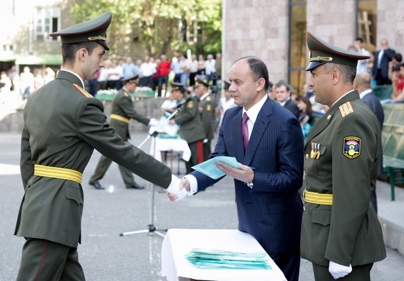 Շնորհավորելով ռազմաբժշկական ֆակուլտետի շրջանավարտներին սպայական կոչում ստանալու կապակցությամբ` պաշտպանության նախարարը մասնավորապես ասել է. «Նայելով ձեզ` կարող ենք համոզմունք հայտնել, որ հայոց բանակ զորակոչվող երիտասարդը վստահությամբ է իր պարտքը կատարելու Հայրենիքի հանդեպ, քանզի նրա առողջության համար հոգ են տանելու ձեր պես գրագետ բժիշկները»: