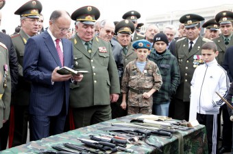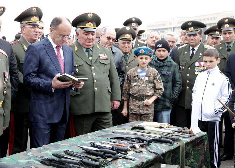 Մինչ միջոցառման մեկնարկը նախարար Սեյրան Օհանյանը, գեներալ-գնդապետ Յուրի Խաչատուրովը և հյուրերը ծանոթացել են հետախույզների զինանոցում առկա զենքերին, օգտագործվող հանդերձանքին, կապի և դիտարկման մասնագիտական միջոցներին։