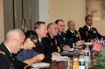 Հանդիպման ընթացքում քննարկվել են հայ-ամերիկյան ռազմական համագործակցությանն առնչվող հարցեր, մասնավորապես Կանզաս նահանգի ազգային գվարդիայի հետ համագործակցությունն ընդլայնելու հեռանկարները: Կողմերը գոհունակությամբ արձանագրել են, որ վերջին ութ տարիների ընթացքում մեծ աշխատանք է կատարվել Կանզասի ազգային գվարդիայի և Հայաստանի պաշտպանության նախարարության միջև համագործակցության խորացման ուղղությամբ: