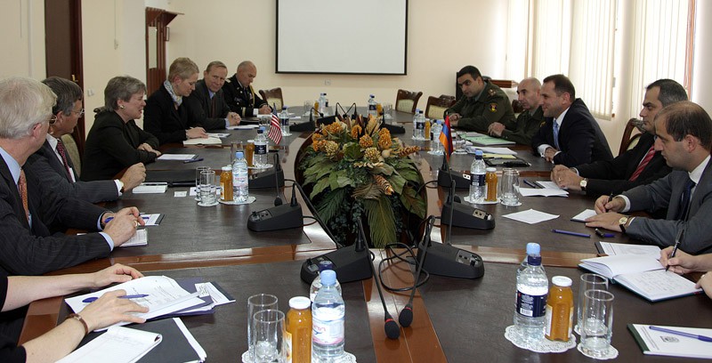 18 Հոկտեմբերի, 2011 00:00ՀՀ պաշտպանության նախարարի առաջին տեղակալ Դավիթ Տոնոյանը հոկտեմբերի 18-ին ընդունել է սպառազինությունների վերահսկման հարցերով ԱՄՆ պետքարտուղարի օգնական Ռոզ Գոթեմյուլերին և ԱՄՆ պաշտպանության փոխնախարարի տեղակալ Սելեսթ Վոլանդերին: Հանդիպմանը մասնակցում էր նաև Հայաստանում ԱՄՆ արտակարգ և լիազոր դեսպան Ջոն Հեֆերնը: