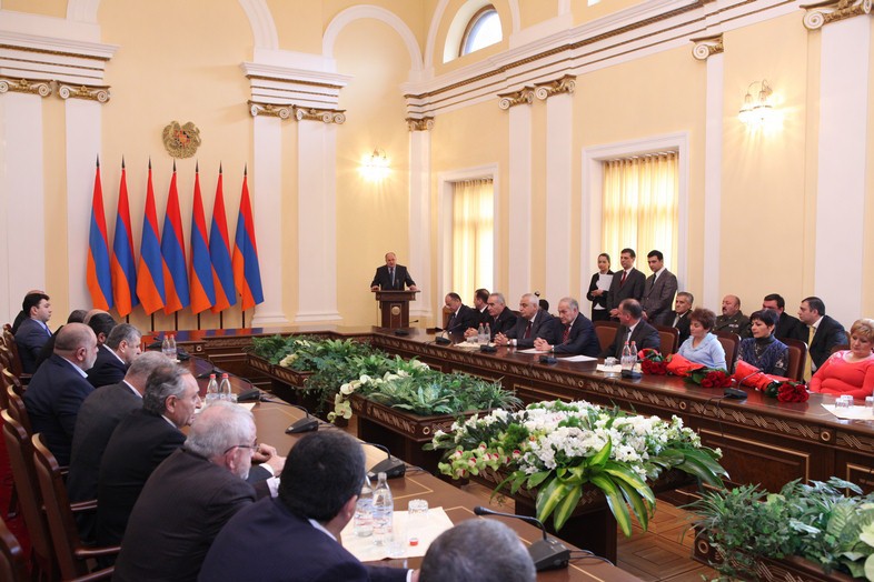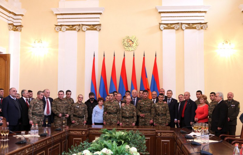 Միկոյանների, Դանիելյանների, Գլջիյանների, Գեւորգյանների եւ Ավետիսյանների ընտանիքների ներկայացուցիչներին եւ ԱԺ պատգամավորներին հանձնելով պարգեւները` ԱԺ նախագահ Սամվել Նիկոյանը շնորհավորեց բոլորին Բանակի օրվա ու ՀՀ զինված ուժերի կազմավորման 20-ամյակի առթիվ եւ նշեց. «Մեր բանակն արդեն եւ միաժամանակ` դեռեւս 20-ամյա երիտասարդ է, բայց տարիքին թերեւս անհամապատասխան շատ ավելի հարուստ կենսափորձով, եւ վստահությամբ է նայում ապագային, որովհետեւ ունի մնայուն ու արժանապատիվ հետք անցյալում եւ ներկայում: