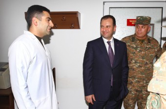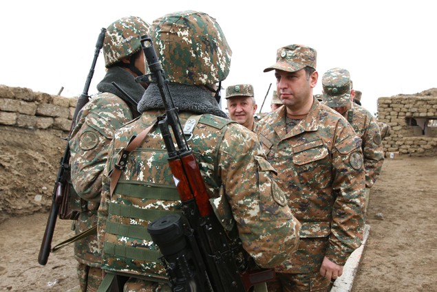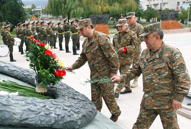 ԼՂՀ նախագահ Բակո Սահակյանի հետ հոկտեմբերի 21-ին կայացած հանդիպման ժամանակ, որին մասնակցել է նաև ԼՂՀ ՊՆ, ՊԲ հրամանատար, գեներալ-լեյտենանտ Լևոն Մնացականյանը, քննարկվել են հայկական երկու հանրապետությունների ռազմական համագործակցությանը վերաբերող հարցերի լայն շրջանակ, նախանշվել են պաշտպանական ոլորտում իրականացվելիք հետագա աշխատանքների կարևորագույն ուղղությունները: Այնուհետև Արցախի և Հայաստանի ռազմաքաղաքական ղեկավարները այցելել են Ստեփանակերտի կենտրոնական զինհոսպիտալ, ծանոթացել բուժսպասարկման պայմաններին, շփվել հոսպիտալի բուժանձնակազմի և առողջական տարբեր խնդիրներով այստեղ գտնվող զինծառայողների հետ: