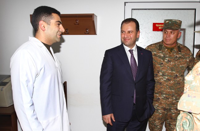 Այցելության շրջանակում ՀՀ պաշտպանության նախարարը, ԶՈՒ գլխավոր շտաբի պետը և ՀՀ նախագահի գլխավոր ռազմական տեսուչը ԼՂՀ ՊԲ հրամանատարի ուղեկցությամբ եղել են նաև ՊԲ «Ասպարեզ» ուսումնական կենտրոնում, հետևել այստեղ իրականացվող պարապմունքների ընթացքին, որից հետո կենտրոնական ենթակայության մի շարք զորամասերում հանդիպումներ են ունեցել և ճաշել են անձնակազմի հետ: ՀՀ պաշտպանության նախարարը շնորհակալություն է հայտնել զինծառայողներին բարեխիղճ ծառայության համար և ներկայացրել այն նոր մոտեցումները, որոնք ընկած կլինեն հայկական զինված ուժերի հետագա զարգացման հիմքում:
