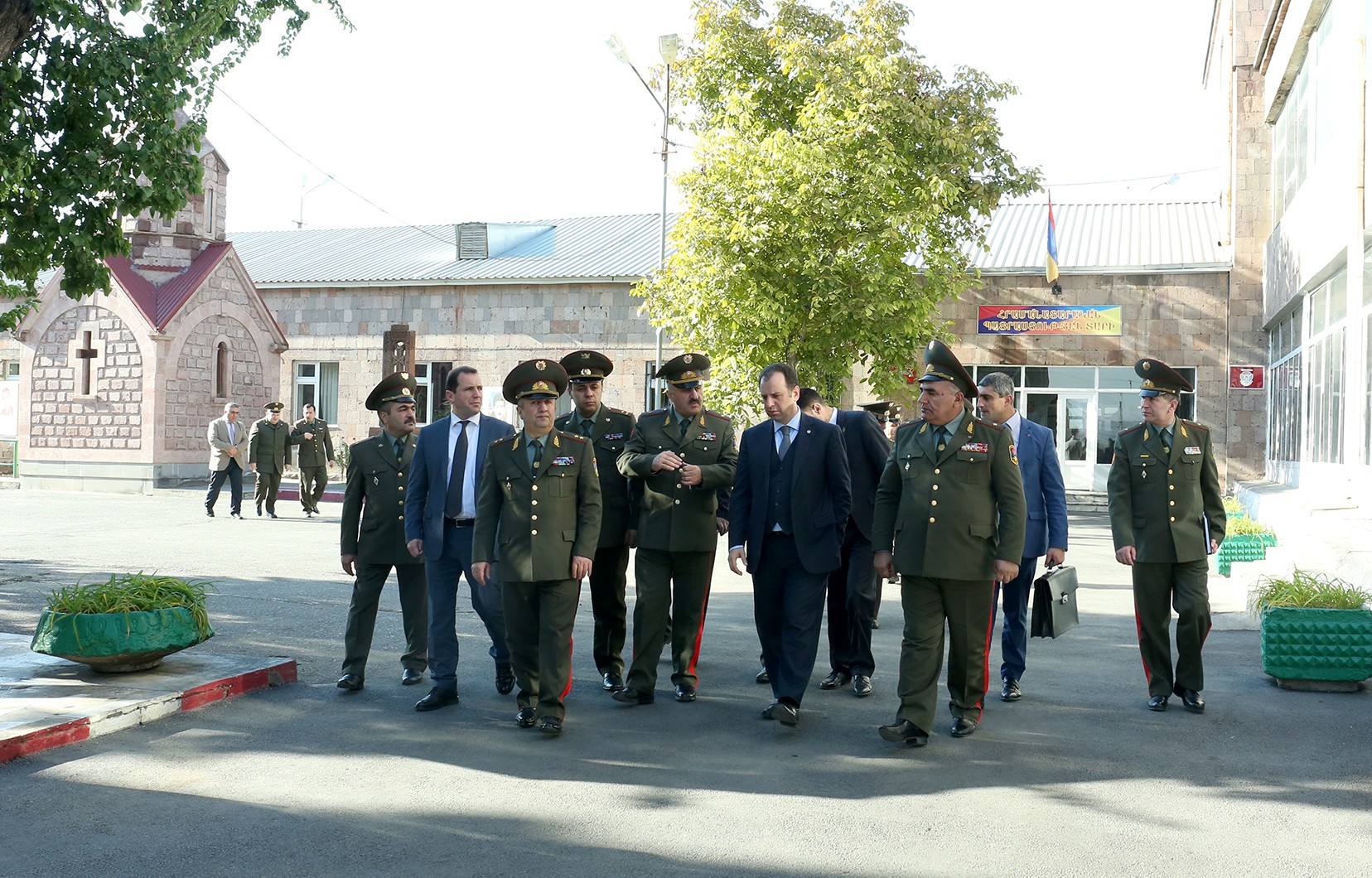 4 Նոյեմբերի, 2016 20:27Վիգեն Սարգսյանը շրջայց է կատարել համալսարանի հրամանատարաշտաբային և համազորային ֆակուլտետների մասնաշենքերում, ծանոթացել է ուսումնառության պայմաններին, սպայական կադրերի պատրաստման ու վերապատրաստման ծրագրերին, կրթական հնարավորություններին, տեղում դիտարկել է կուրսանտների ուսուցման կազմակերպման համար անհրաժեշտ նյութատեխնիկական բազան, զորանացային, լսարանային, ճաշարանային պայմանները, առկա խնդիրները և դրանց լուծման հնարավոր ուղիները: