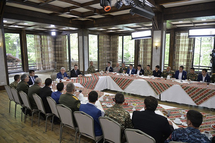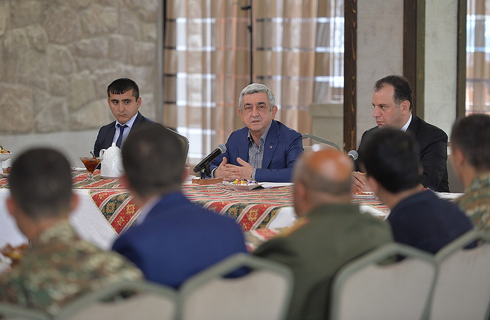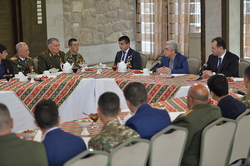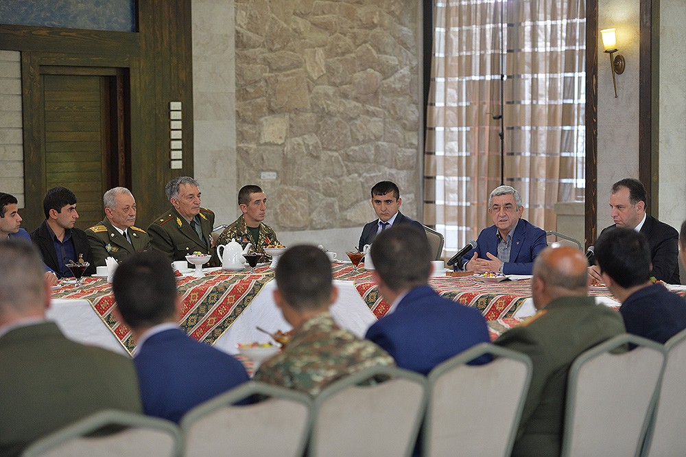 Արդեն ավանդական դարձած այս ձևաչափով հանդիպմանը Նախագահը զինծառայողներին առաջարկել է անկաշկանդ խոսել իրենց անհանգստացնող խնդիրների, պաշտպանության ոլորտի արդիականացման, բարեփոխումների, հայրենիքի հետագա հզորացման ու զարգացման պատկերացումների մասին և ներկայացնել իրենց առաջարկությունները: Սերժ Սարգսյանը նաև պատրաստակամություն է հայտնել պատասխանել հանդիպման մասնակիցներին հետաքրքրող հարցերին, լսել զինվորականների կարծիքները Պաշտպանության նախարարի առաջարկած «Պատիվ ունեմ» և «Ես եմ» գաղափարների վերաբերյալ: