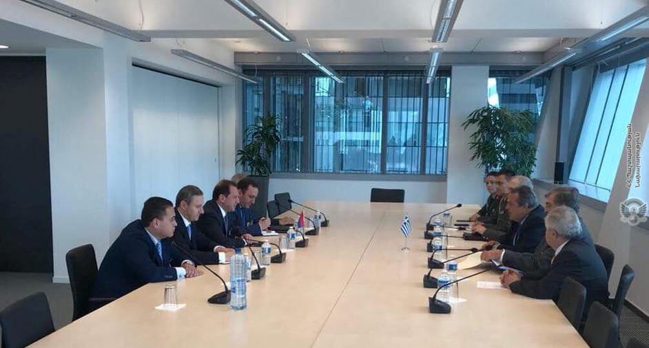9 Հունիսի, 2018 11:44Նախ` ՀՀ պաշտպանության նախարարը հանդիպում է ունեցել Հունաստանի պաշտպանության նախարար Պանայոտիս Կամենոսի հետ: Հանդիպման ընթացքում քննարկվել են հայ-հունական ռազմական համագործակցության օրակարգային հարցերը և զարգացման հեռանկարները: Ընդգծվել է հայ-հունական ռազմական համագործակցության բարձր մակարդակը: Դավիթ Տոնոյանը և Պանայոտիս Կամենոսը պայմանավորվածություններ են ձեռք բերել երկկողմ և բազմակողմ ձևաչափերով մի շարք նոր համատեղ նախաձեռնություններ իրականացնելու վերաբերյալ: