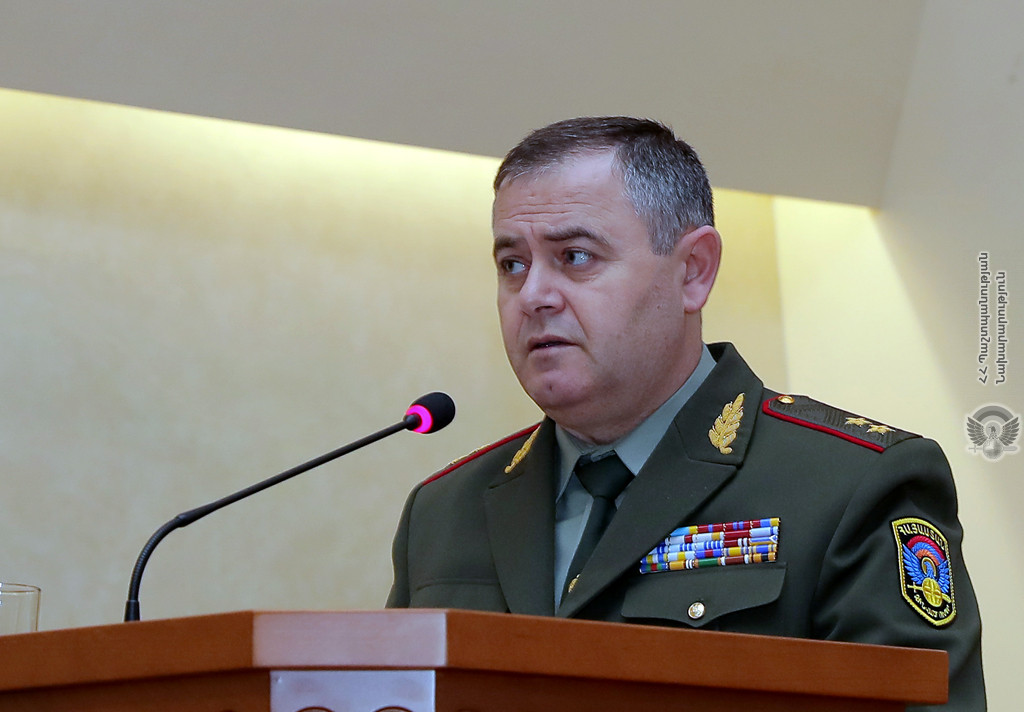 26 Մարտի, 2019 12:23ՀՀ ՊՆ վարչական համալիրում անցկացվող օպերատիվ հավաքի շրջանակում մարտի 26-ին «ՀՀ զինված ուժերում առկա վիճակը և զարգացման ուղղությունները» թեմայով դասախոսությամբ հանդես եկել է ՀՀ ԶՈՒ գլխավոր շտաբի պետ, գեներալ-լեյտենանտ Արտակ Դավթյանը:
