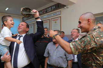 Վիճակահանության դահլիճում պաշտպանության նախարարը զրուցել է նաև զինակոչիկների հետ, շնորհավորել զինված ուժերի շարքերը համալրելու առթիվ, մաղթել անվտանգ և գերազանց ծառայություն։