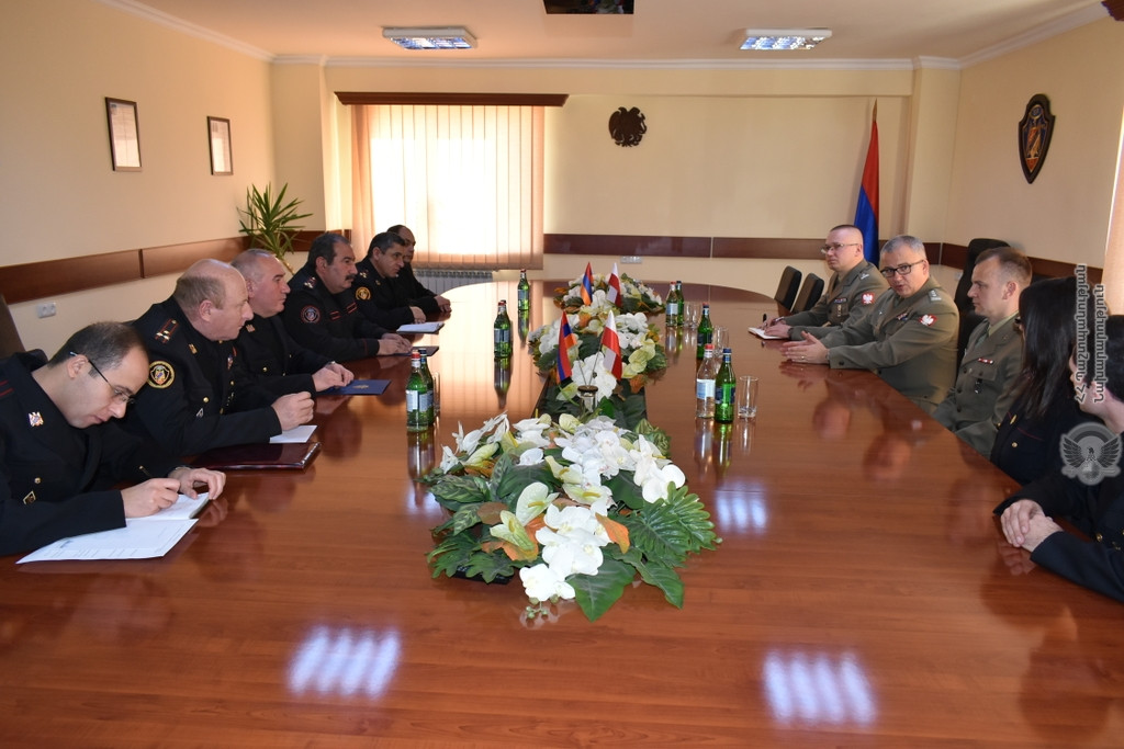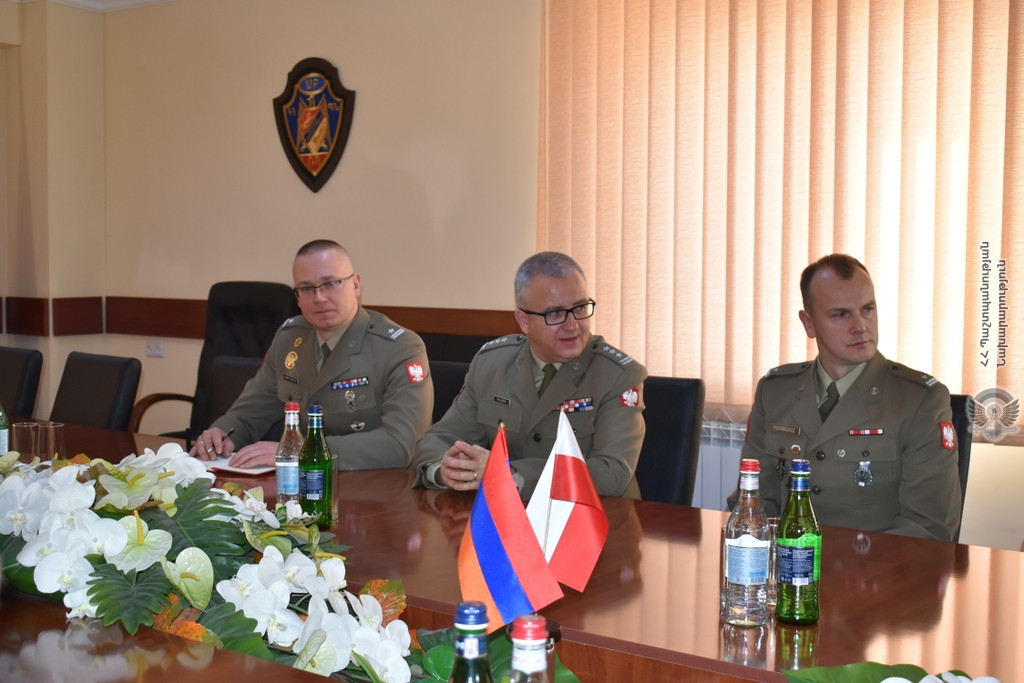 27 Նոյեմբերի, 2019 17:58Նոյեմբերի 26-ին ՀՀ ՊՆ ռազմական ոստիկանության պետ, գնդապետ Արթուր Բաղդասարյանն ընդունել է Լեհաստանի Հանրապետության պաշտպանության նախարարության ռազմական ոստիկանության պատվիրակությանը: