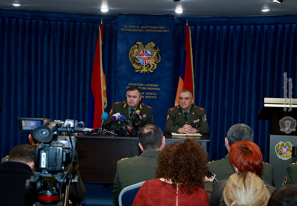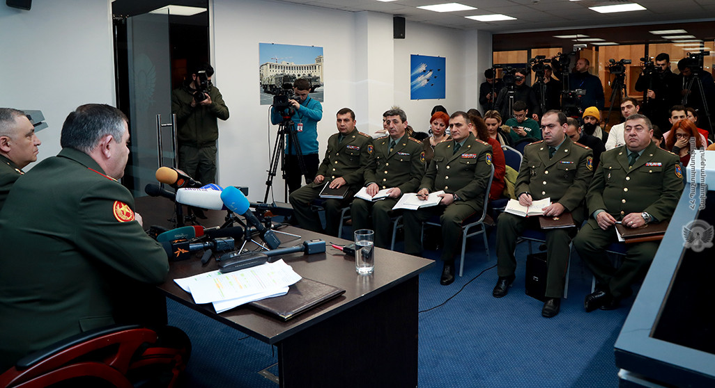 26 Դեկտեմբերի, 2019 11:09Դեկտեմբերի 26-ին ՀՀ ՊՆ վարչական համալիրի մամուլի սրահում ՀՀ ԶՈՒ գլխավոր շտաբի պետ, գեներալ-լեյտենանտ Արտակ Դավթյանը հանդիպել է լրատվամիջոցների ներկայացուցիչների հետ: