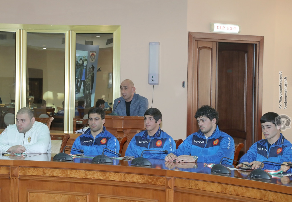 7 Января, 2022 18:217-го января в административном комплексе Министерства обороны Армении принимали военнослужащих-спортсменов ВС РА, участвовавших в чемпионатах мира среди военнослужащих по борьбе и боксу в 2021-м году, представителей видов спорта и тренеров.