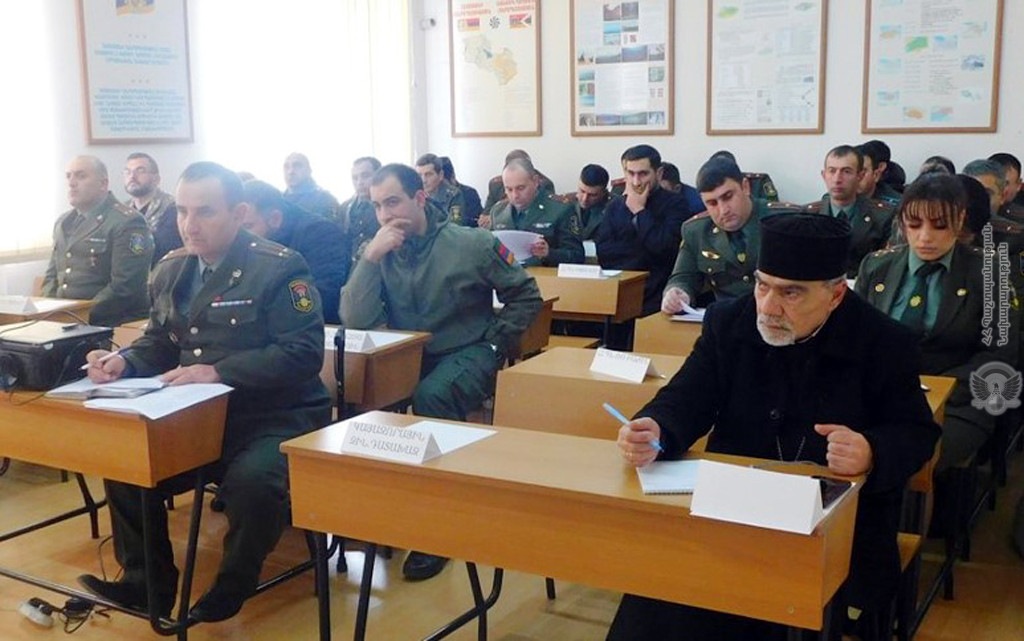1 Февраля, 2022 19:18Под руководством командующего объединенной группировкой войск (сил) ВС РА и ВС РФ генерал-лейтенанта Т. Парваняна 1 февраля было проведено методическое практическое занятие на тему "Состояние и пути улучшения воинской дисциплины в Вооруженных силах РА", в котором приняли участие заместители командиров войсковых частей одного из гарнизонов по морально-психологическому обеспечению, старшие офицеры-юристы, офицеры-психологи, капелланы.