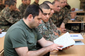 Сурен Папикян обошел территорию и учебный корпус воинской части, пообщался с призывниками, следил за ходом занятий. Командир воинской части полковник Давид Алексанян представил главе Минобороны структуру и функции воинской части.