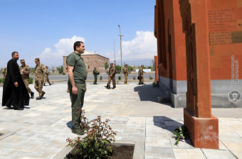 В воинской части министр обороны почтил память, возложил цветы к хачкарам в память о национальном герое Армении Ваагне Асатряне, погибшим и пропавшим без вести во время 44-дневной войны.