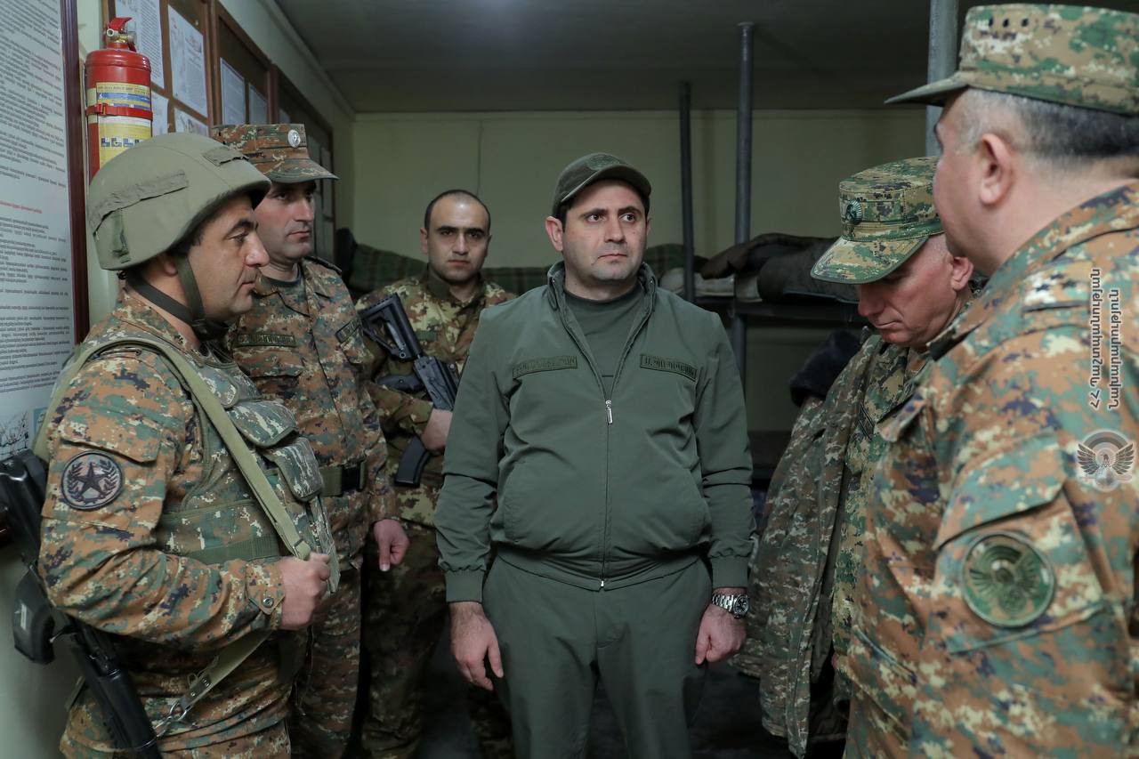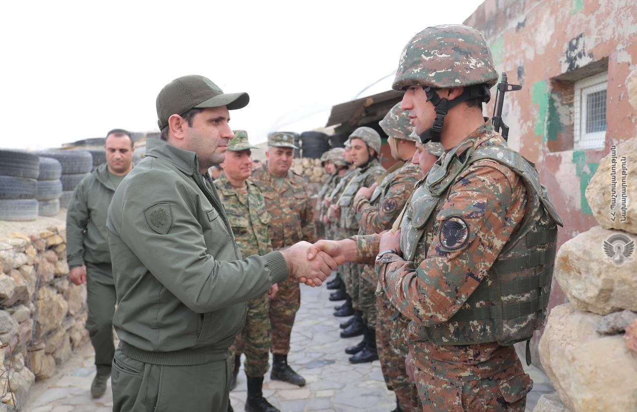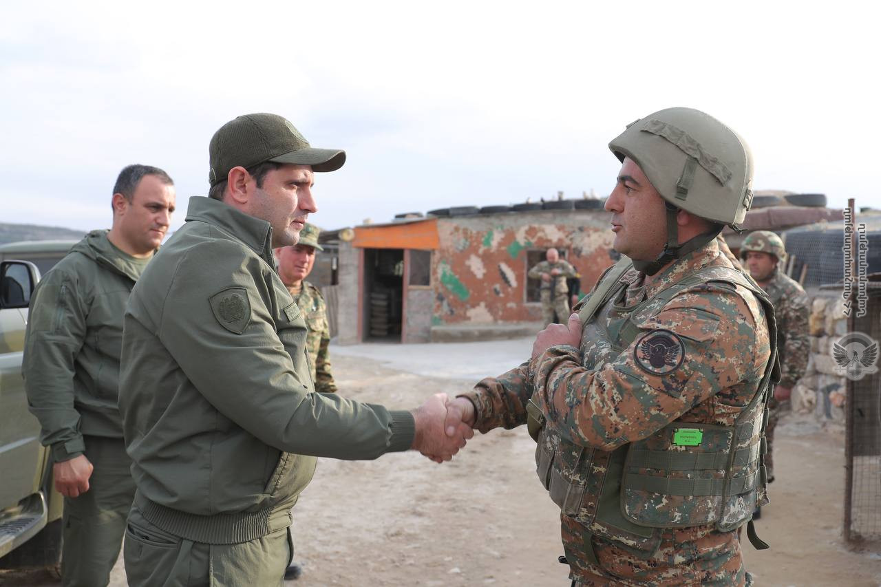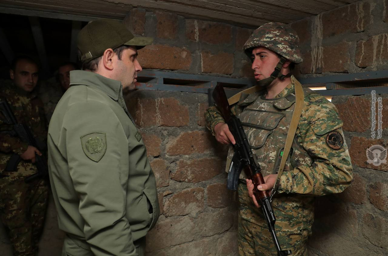Затем Сурен Папикян посетил боевые позиции приграничной зоны, встретился с военнослужащими-контрактниками, несущими боевое дежурство, побеседовал о вопросах, связанных со службой. Министр Папикян призвал проявлять большую активность на занятиях боевой, огневой и физической подготовки.