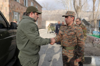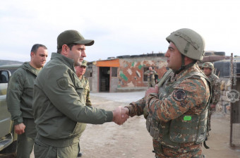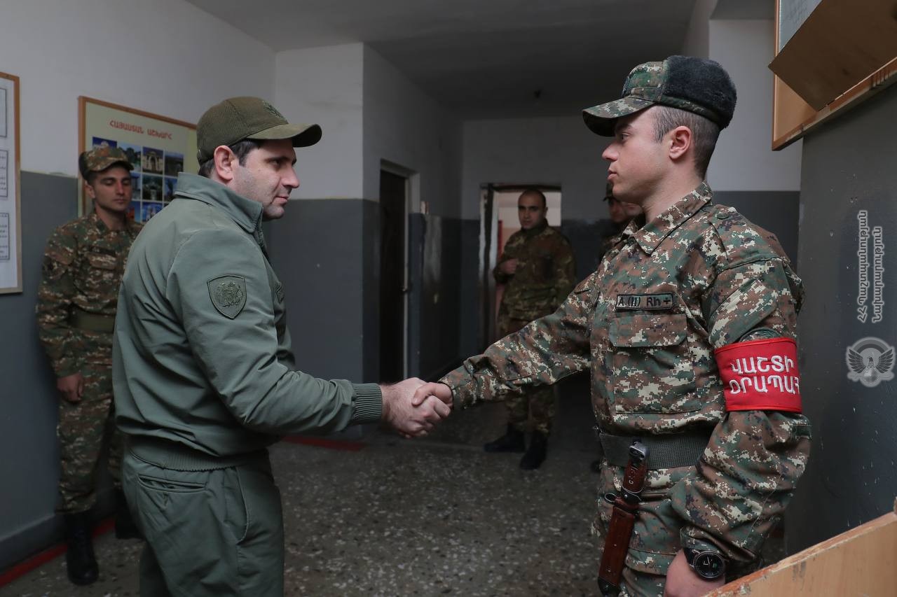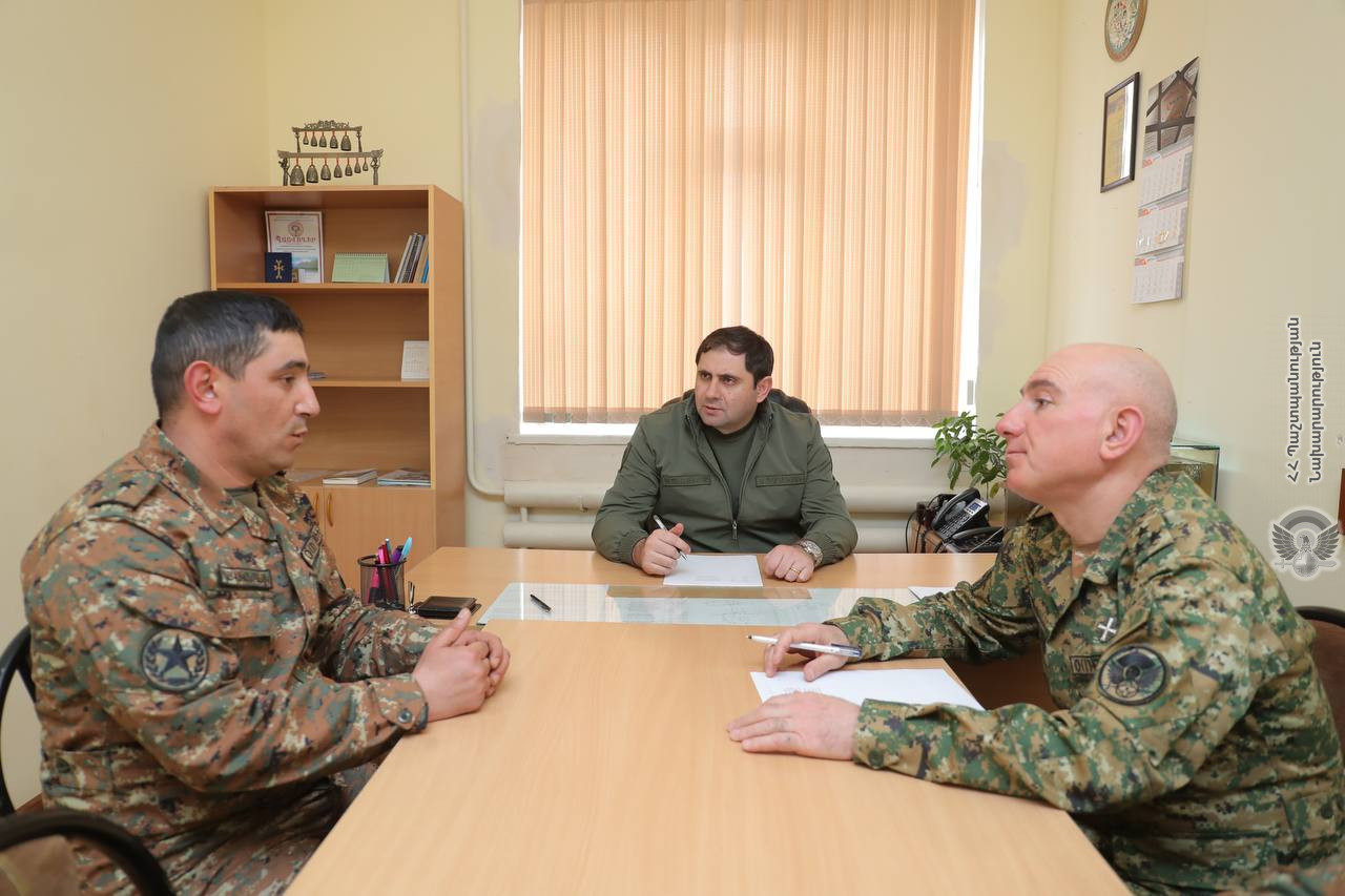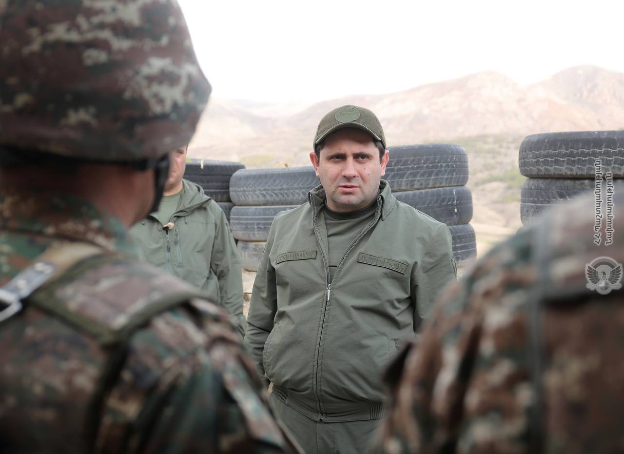 Затем Сурен Папикян посетил боевые позиции приграничной зоны, встретился с военнослужащими-контрактниками, несущими боевое дежурство, побеседовал о вопросах, связанных со службой. Министр Папикян призвал проявлять большую активность на занятиях боевой, огневой и физической подготовки.