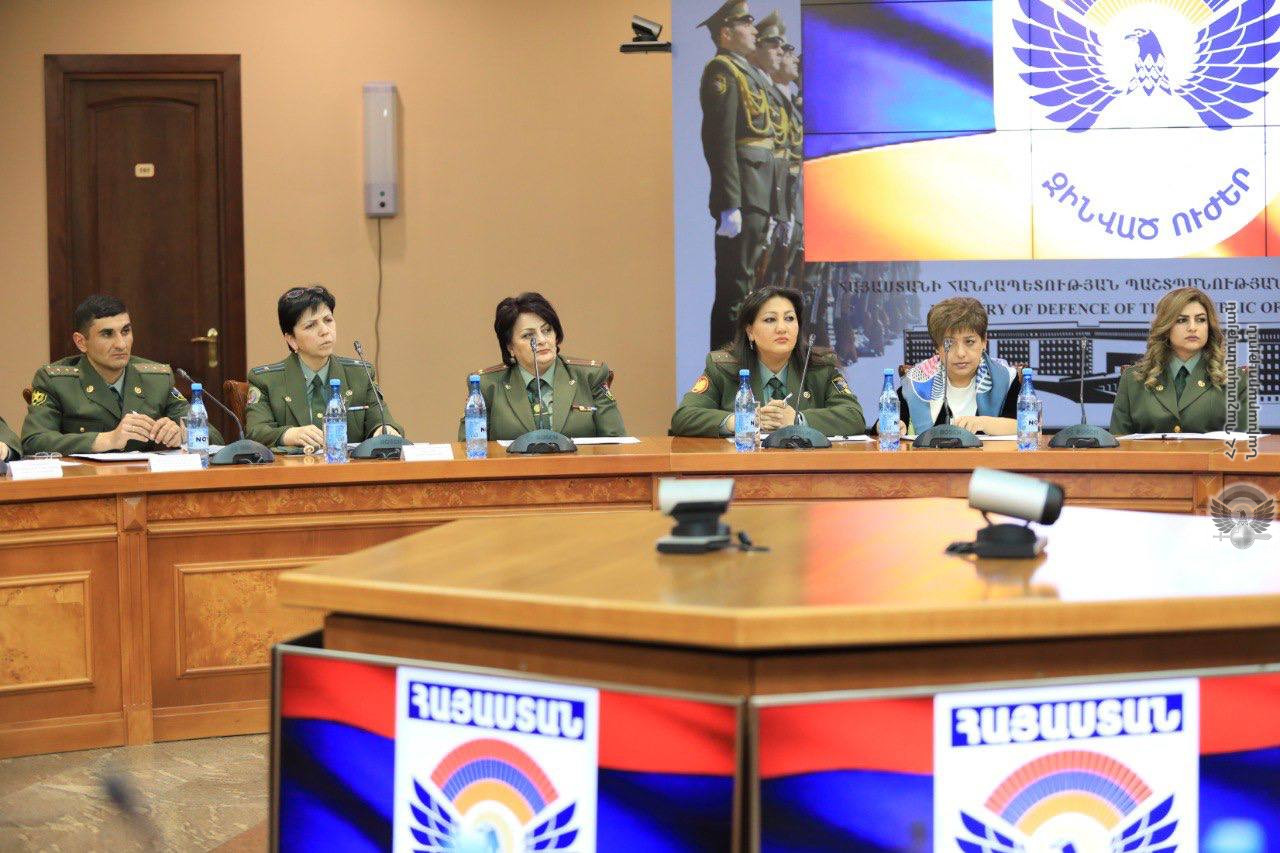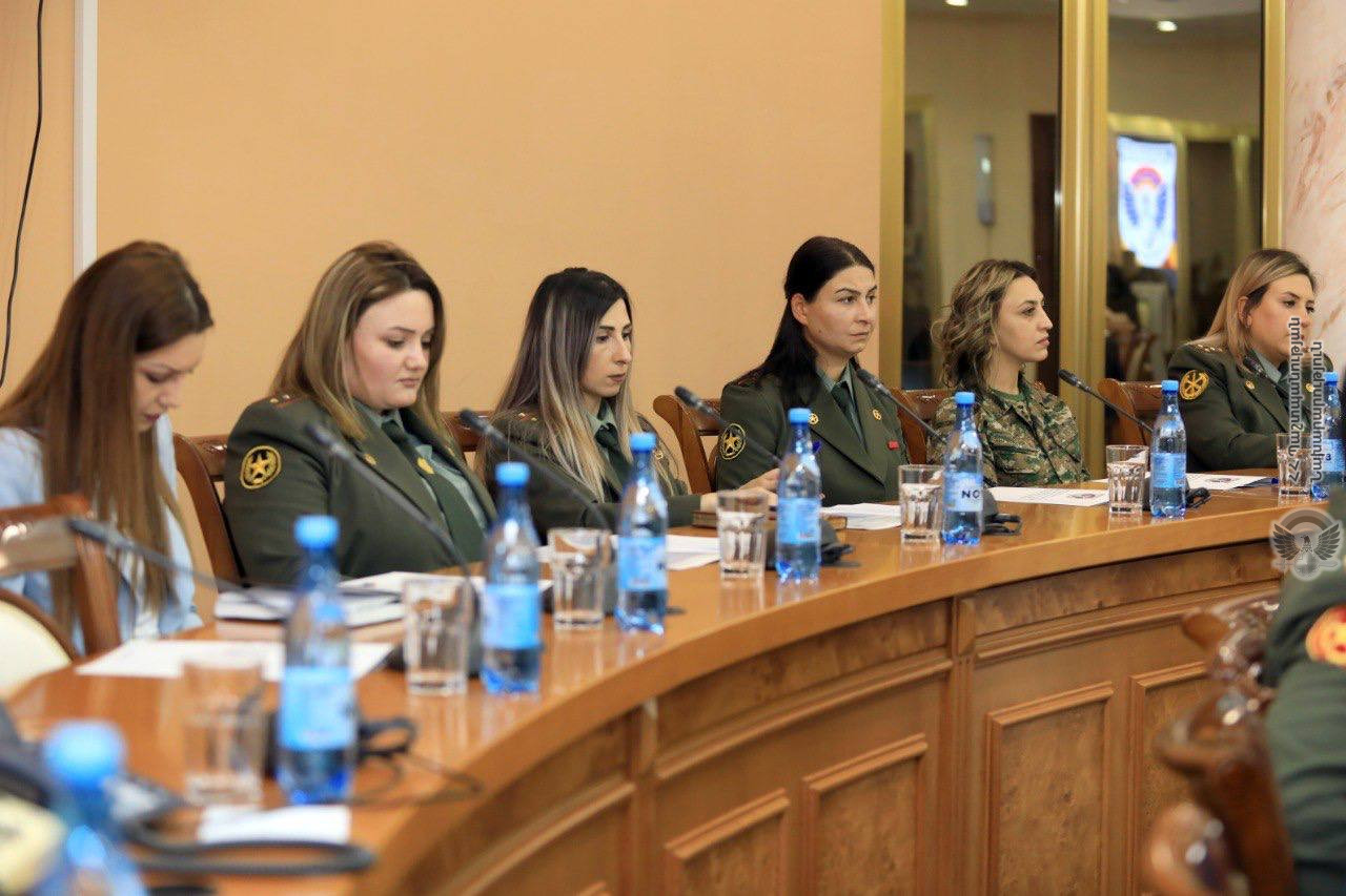 7 Апреля, 2023 18:597 апреля в административном комплексе МО РА состоялось обсуждение на тему «Стимулирование вовлечения женщин в различные подразделения Вооруженных сил".