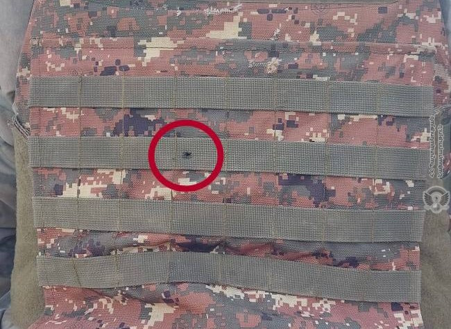 На прикрепленной фотографии - бронежилет военнослужащего ВС РА.