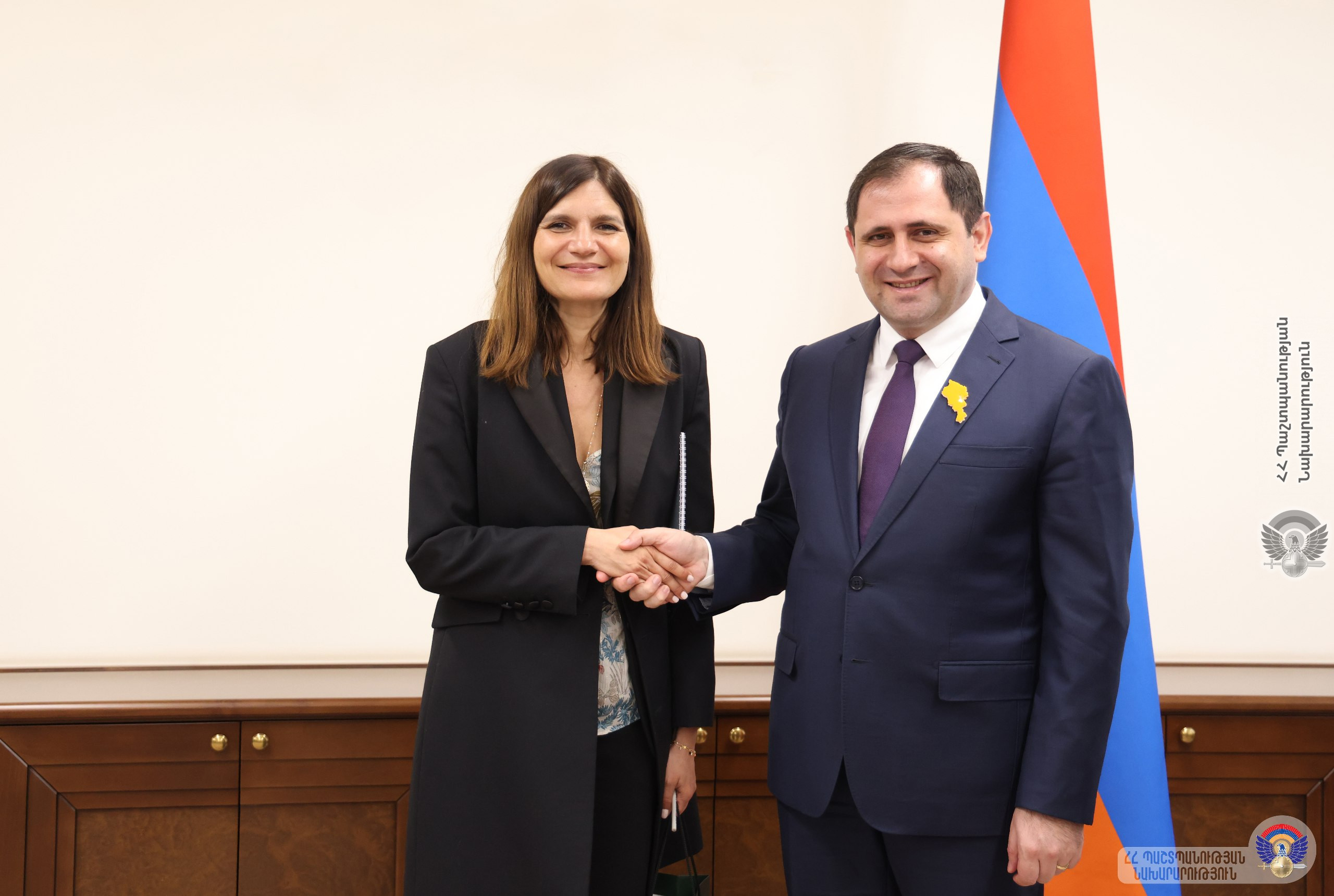 24 Апреля, 2026 14:3324 апреля министр обороны РА Сурен Папикян принял полномочного министра вооруженных сил и по делам ветеранов Франции Алис Руфо.