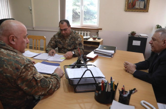 Командир армейского корпуса, полковник Смбат Григорян и заместитель начальника Службы военного контроля Министерства обороны, полковник Вачаган Нерсисян доложили руководителю оборонного ведомства о ходе проверок, проведенных Службой военного контроля в подразделениях, подчиненных армейскому корпусу, а также о выявленных проблемах.