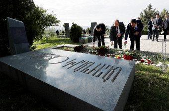 The visitors laid flowers at the graves of Commander Vazgen Sargsyan and Andranik Ozanyan, at the memorial to the fallen freedom fighters.