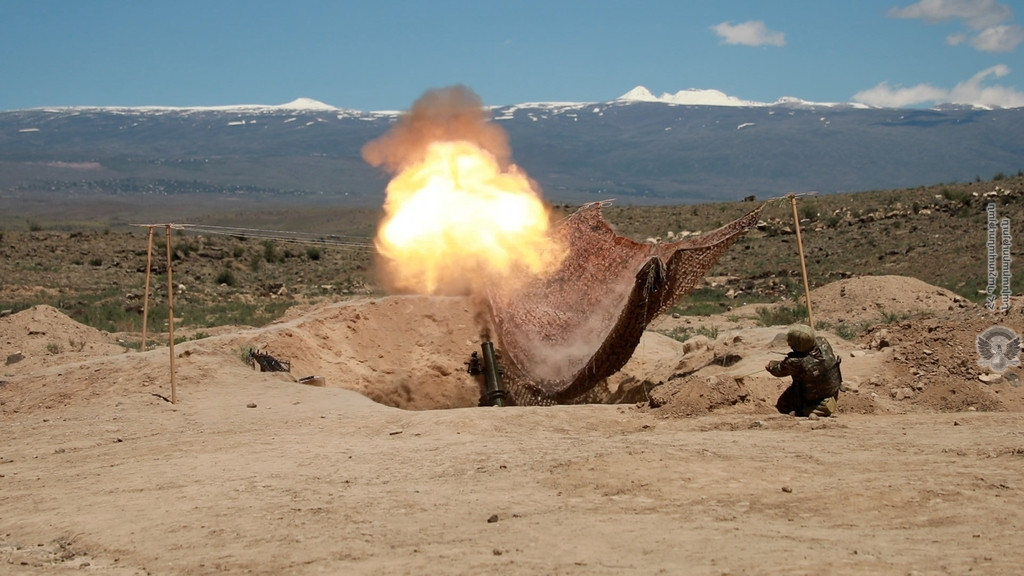 The journalists visited the training center of the grenade launcher, where they observed the practical firing trainings of the artillerymen.
