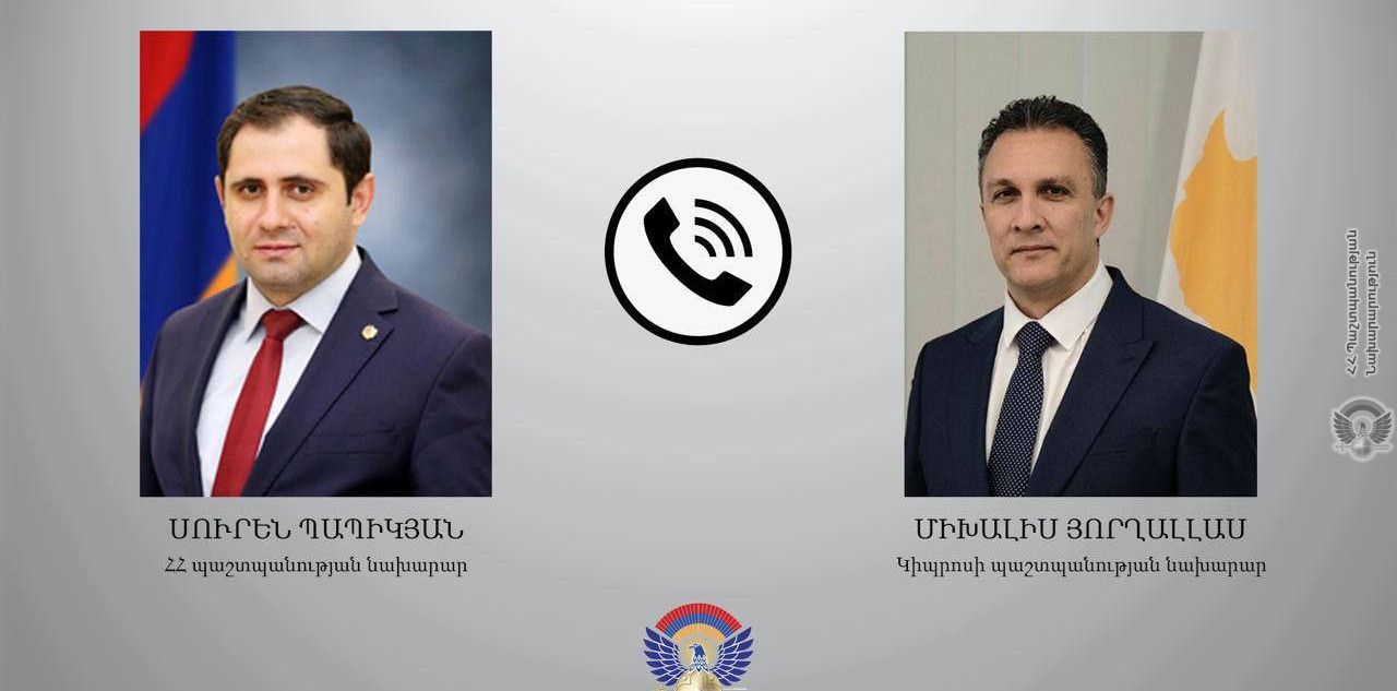 7 September, 2023 10:56On September 7, the Minister of Defence of the Republic of Armenia Suren Papikyan had a telephone conversation with the Minister of Defence of the Republic of Cyprus Michalis Giorgallas.