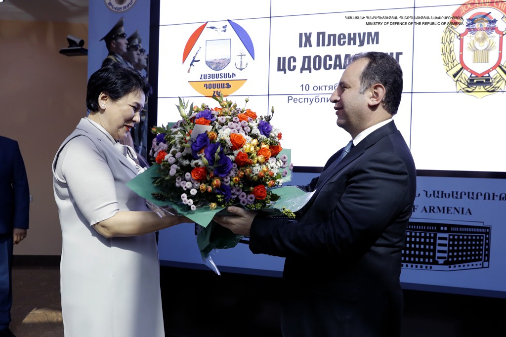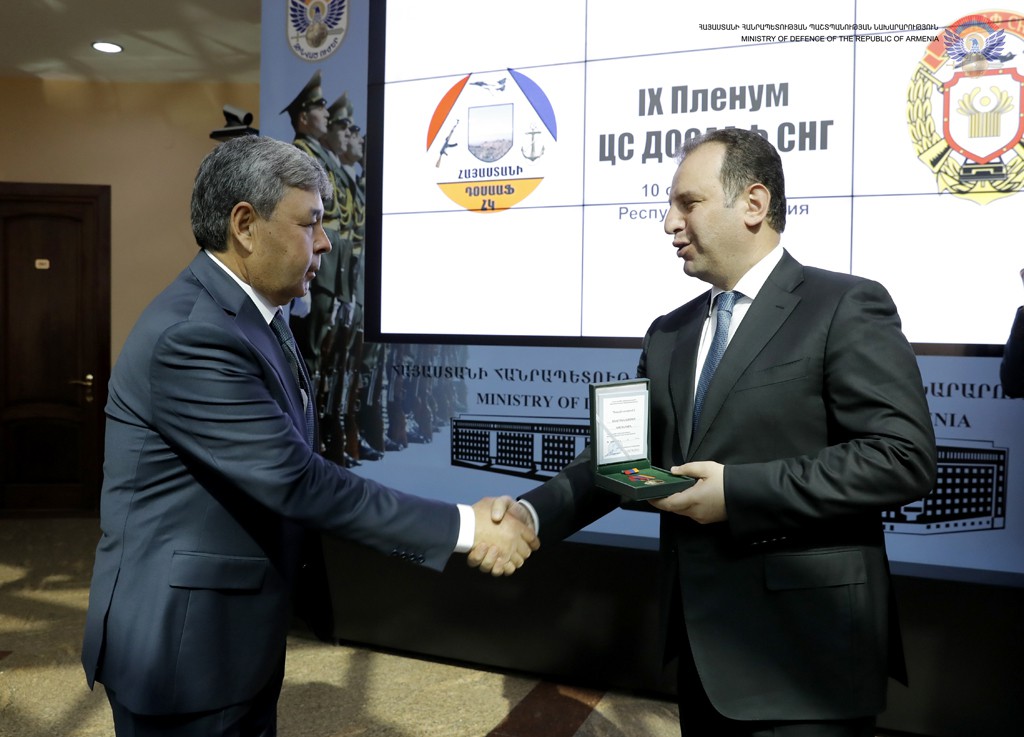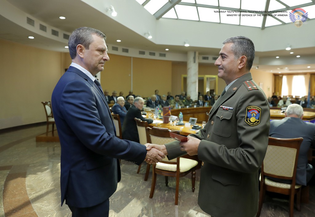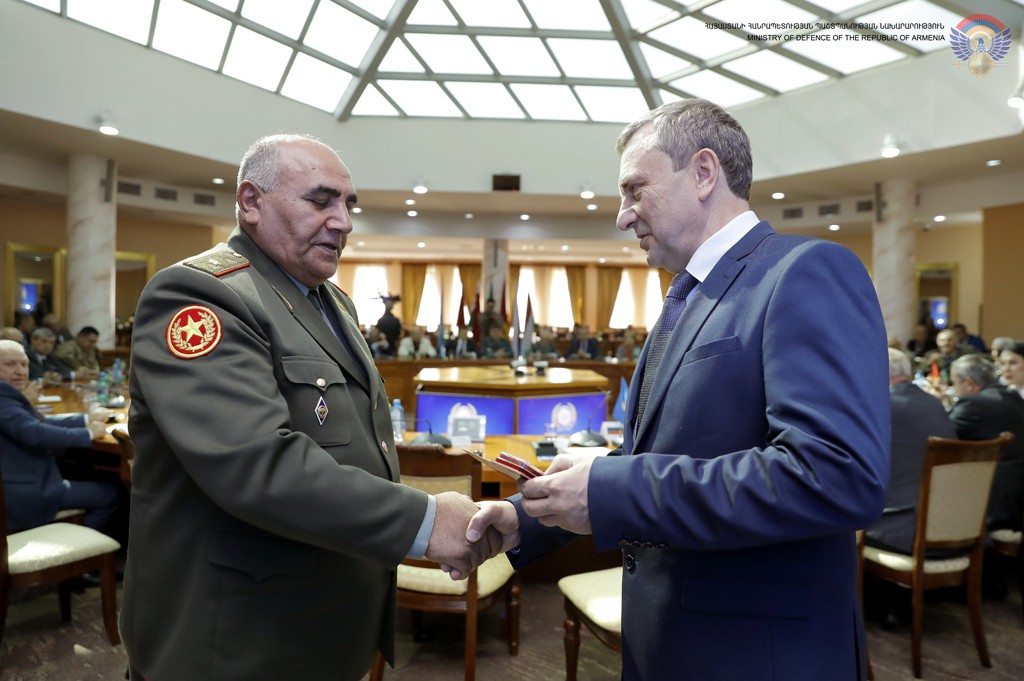 At the end of the session, Armenian Defence Minister Vigen Sargsyan and President of Armenian DOSAAF Arkady Ter-Tadevosyan were awarded DOSAAF medal named after the first three-time USSR hero A. Pokryshkin.