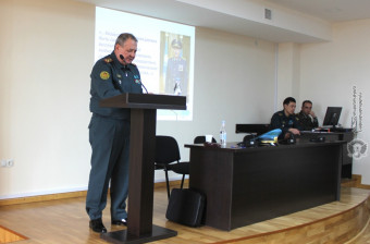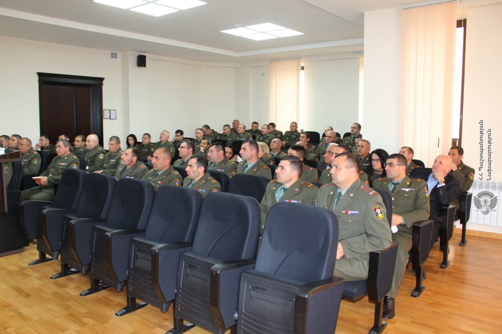 28 March, 2018 12:54Kazakhstan Ministry of Defence Military Attache Col. Mukhtar Maykeev delivered a speech at the MOD Vazgen Sargsyan Military University on 27 March.