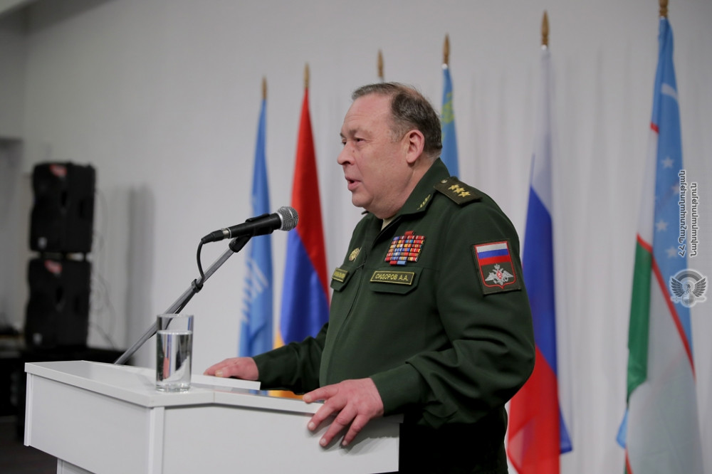 Armenian Deputy Defence Minister Artak Davtyan, Deputy Chief of General Staff Maj. Gen. Andranik Makaryan, CSTO Chief of United Staff Col. Gen. Anatoly Sidorov, Secretary of CIS Defence Ministers Council Maj. Gen. Yuri Dashkin and other high-ranking military officials attended the ceremony.