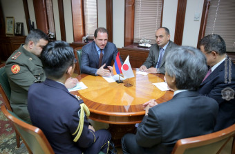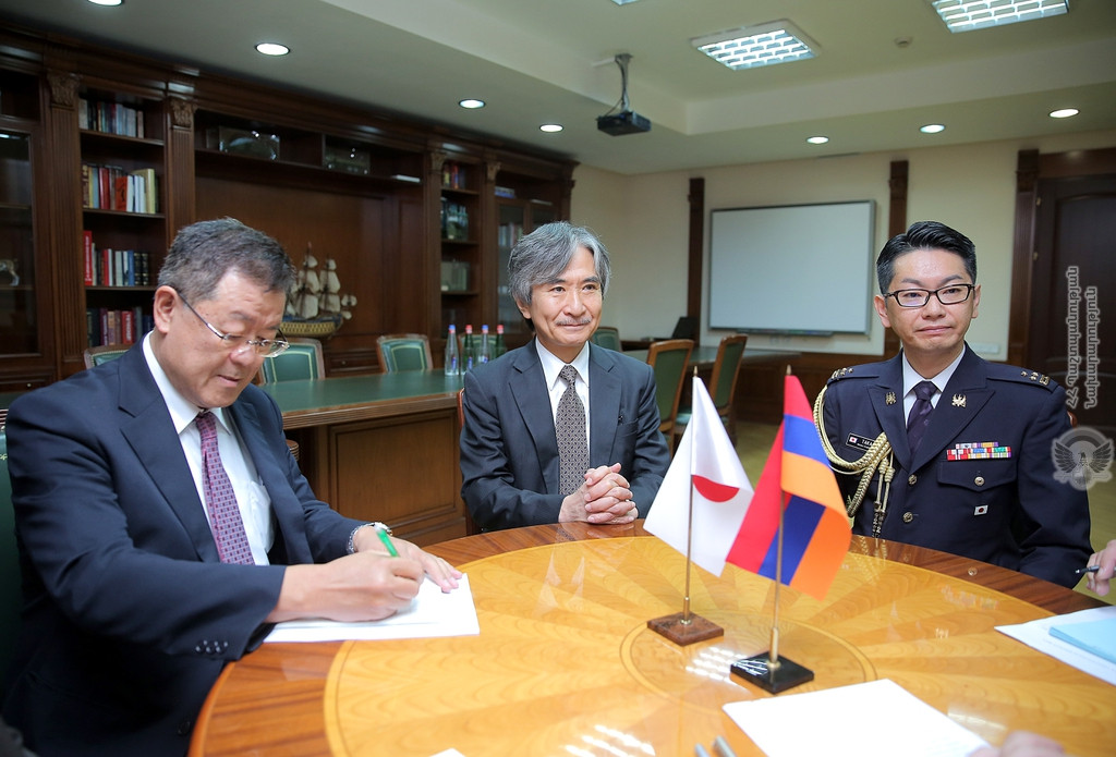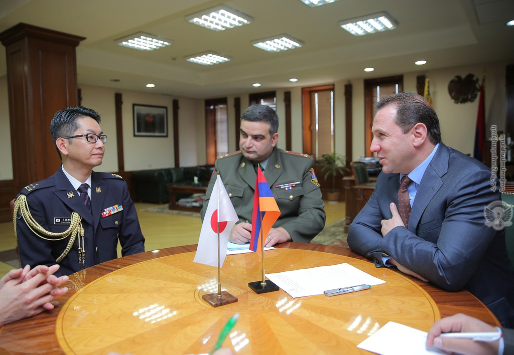 Minister Tonoyan congratulated the newly appointed attaché, wishing him success in his Armenia mission. The parties pointed to the prospect of developing Armenian-Japanese cooperation in the defence field. Studying the experience in military medicine as well as participation of military in rescue missions during disasters were mentioned as possible fields of cooperation.