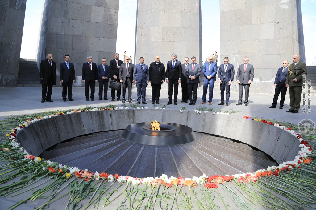 10 April, 2019 15:09On 10 April, the delegation led by Czech Republic Minister of Defence Lubomir Metnar, accompanied by Armenian Deputy Defence Minister Gabriel Balayan, visited the Tsitsernakaberd Memorial Complex to pay tribute to the memory of the Armenian Genocide victims.