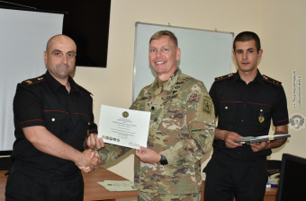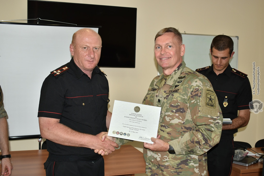 24 May, 2019 11:32"Legal Aspects of Peacekeeping Operations" training, conducted by a NATO educational group, was wrapped up at the Armenian Military Police facilities on 23 May.