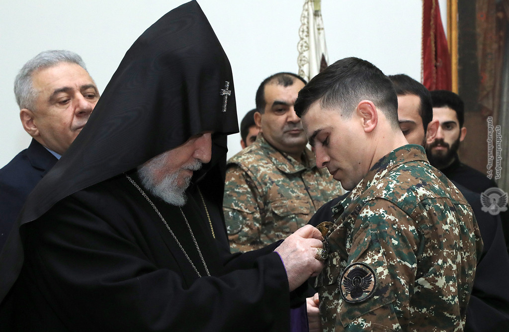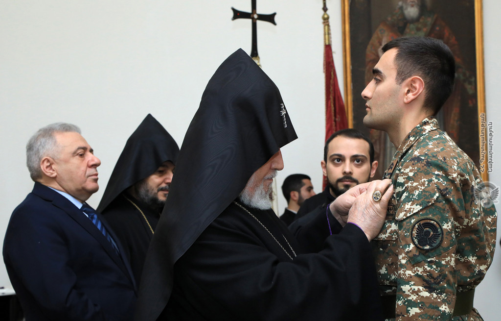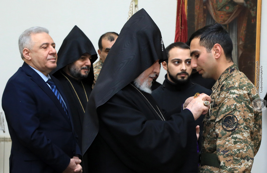 After the Republican Wish, an official reception was held in the ceremonial hall of the Gevorgyan Theological Seminary, during which the award ceremony took place. As a token of gratitude for the bravery shown in the Artsakh war, the Catholicos of All Armenians awarded a group of servicemen with the high order of “Saint Nerses Shnorali” of the Armenian Church.