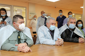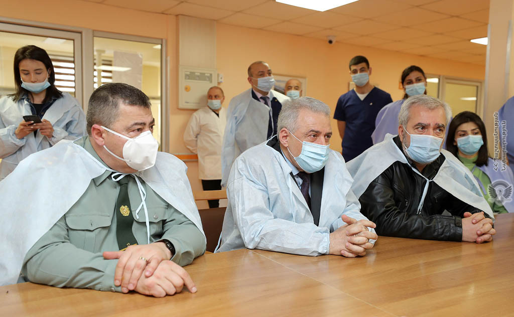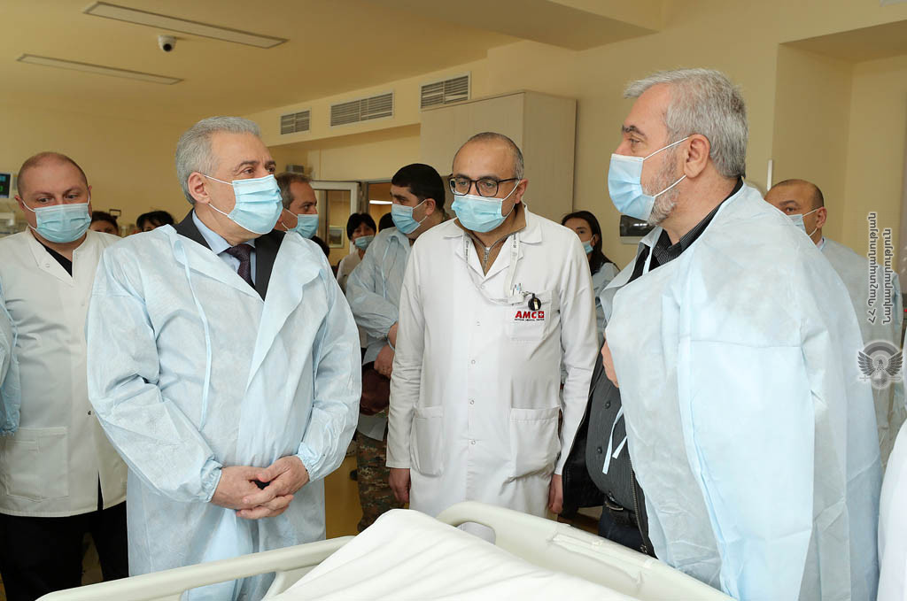 7 April, 2021 18:46On April 7, RA Minister of Defense Vagharshak Harutyunyan, Chairman of the NA Standing committee on Defense and Security Andranik Kocharyan, Head of the Military Medical Department of the Armed Forces, colonel Sahak Ohanyan, visited "Astghik" Medical Center.
