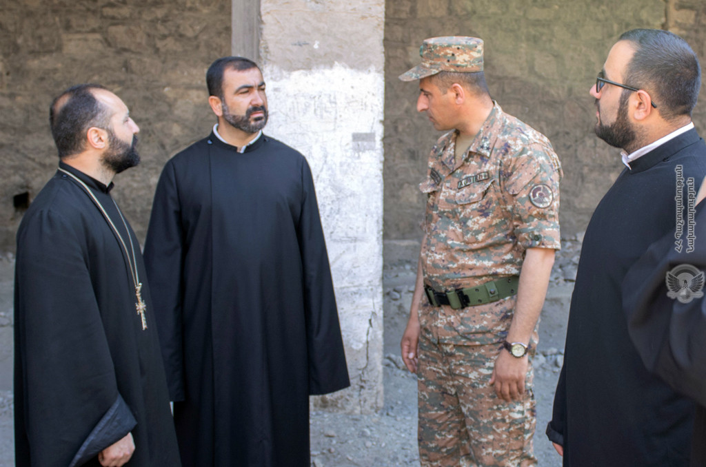 Archimandrite Ter Movses Sargsyan, accompanied by the command of the army corps and chaplains, visited the combat positions, talked with the servicemen about the issues of concern to them, encouraged a number of servicemen who distinguished themselves during the service.