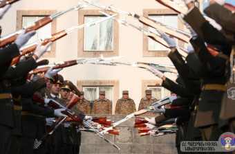 Դրոշը տարածքային պաշտպանության զորքերի հրամանատար, գեներալ-մայոր Սամվել Մինասյանին հանձնել է ՀՀ պաշտպանության նախարարի առաջին տեղակալ, ԶՈՒ ԳՇ պետ, գեներալ-լեյտենանտ Էդվարդ Ասրյանը։