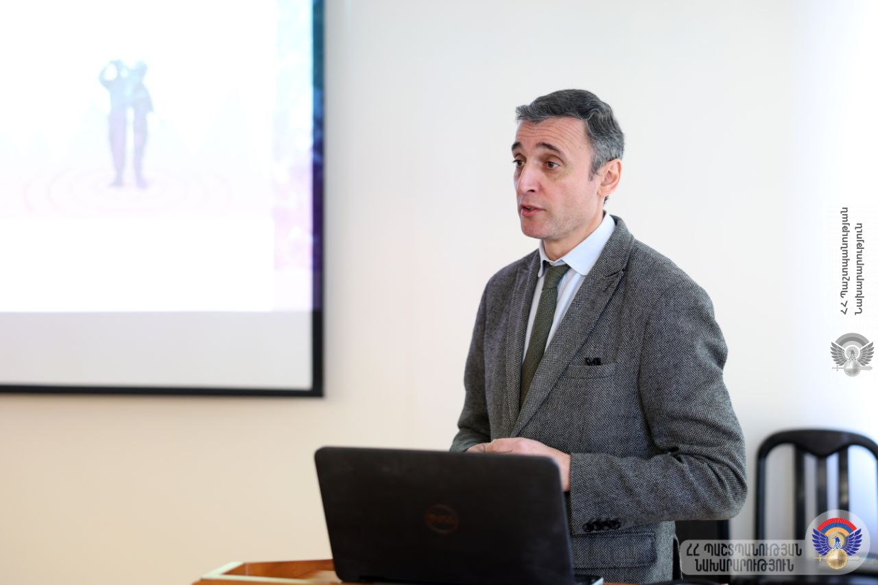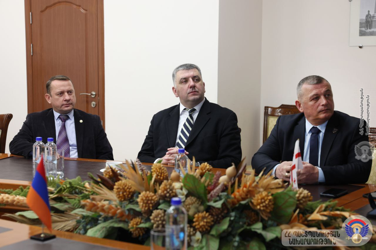 23 Դեկտեմբերի, 2025 16:00ՀՀ պաշտպանության նախարարության վարչական համալիրում ՊՆ պաշտպանական քաղաքականության և միջազգային համագործակցության վարչության պետի տեղակալն ընդունել է Վրաստանի պաշտպանության նախարարության պաշտպանական հաստատությունների զարգացման դպրոցի ղեկավար կազմի ներկայացուցիչներին և նույն հաստատության «Պաշտպանության և անվտանգության ռազմավարական միջգերատեսչական ավագ դասընթացի» ունկնդիրներին:
