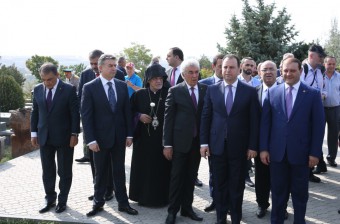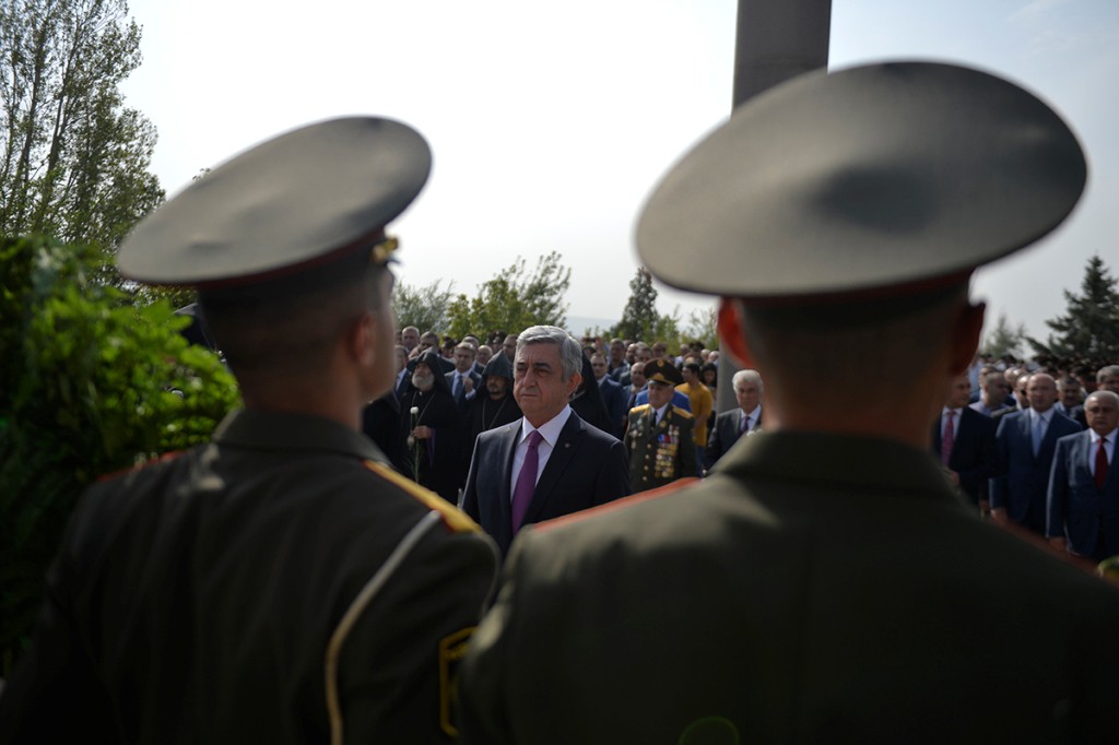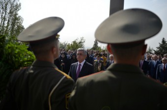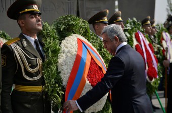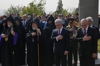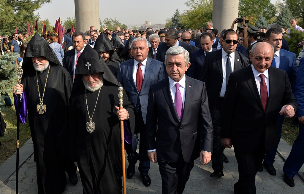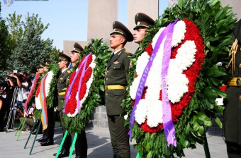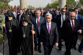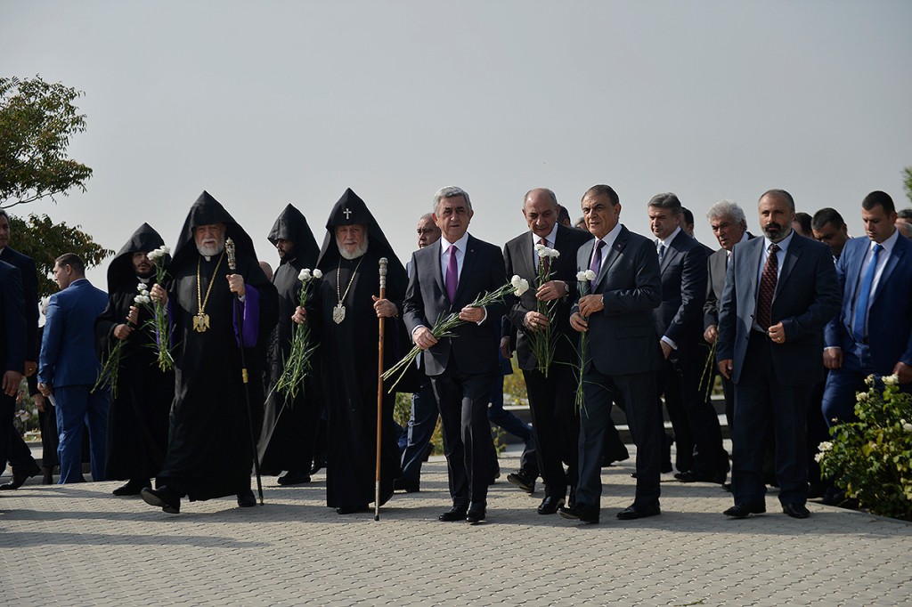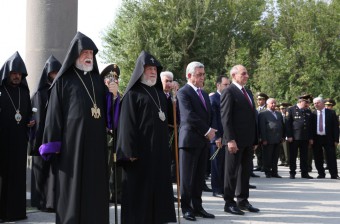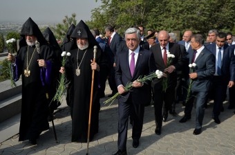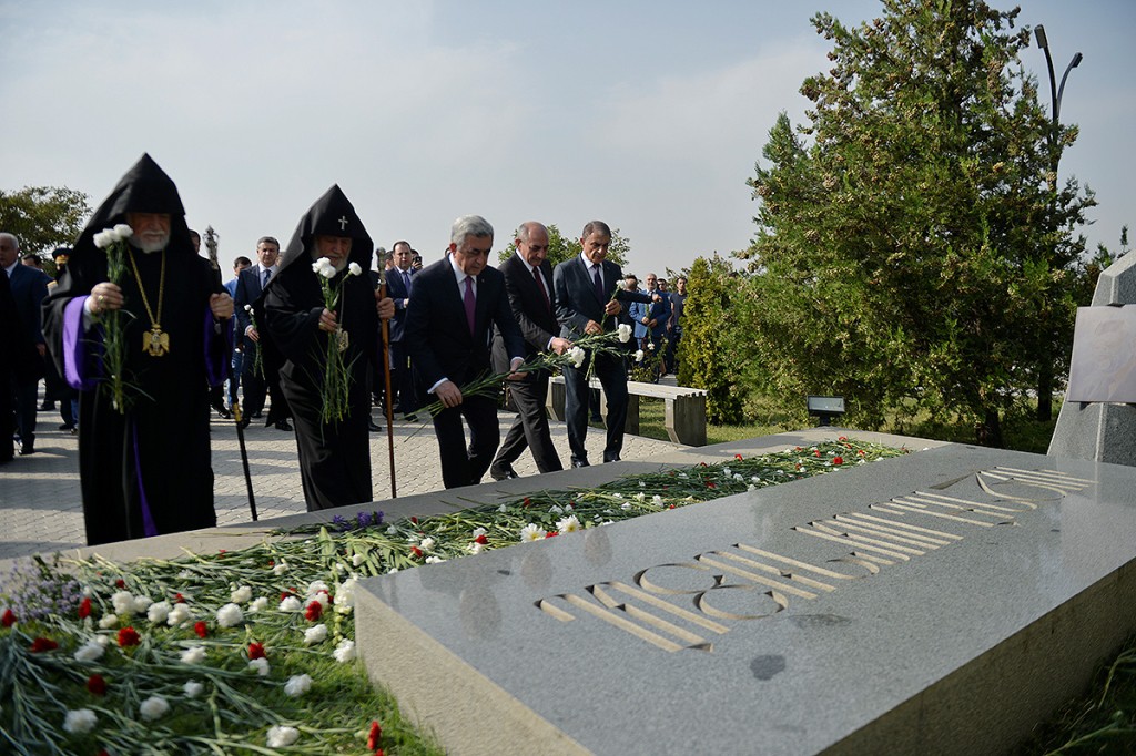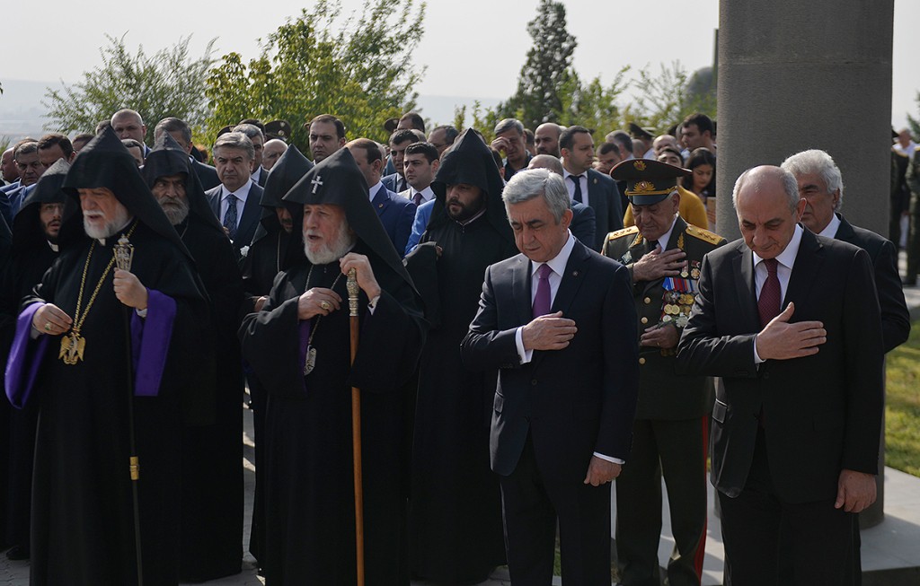 21 Սեպտեմբերի, 2017 17:28Հայաստանի Հանրապետության անկախության 26-րդ տարեդարձի առթիվ հանրապետության նախագահ Սերժ Սարգսյանը Արցախի Հանրապետության նախագահ Բակո Սահակյանի, Ն.Ս.Օ.Տ.Տ. Գարեգին Բ Ծայրագույն Պատրիարք և Ամենայն Հայոց Կաթողիկոսի, Մեծի Տանն Կիլիկիո Կաթողիկոս Ն.Ս.Օ.Տ.Տ. Արամ Առաջինի հետ և Հանրապետության բարձրագույն ղեկավարության ու ՊՆ, ԶՈՒ և ԶՈՒ ԳՇ ղեկավար կազմի ուղեկցությամբ սեպտեմբերի 21-ին այցելել է «Եռաբլուր» զինվորական պանթեոն, հարգանքի տուրք մատուցել իրենց կյանքը Հայրենիքի անկախության համար զոհաբերած հայորդիների հիշատակին: