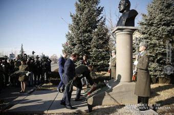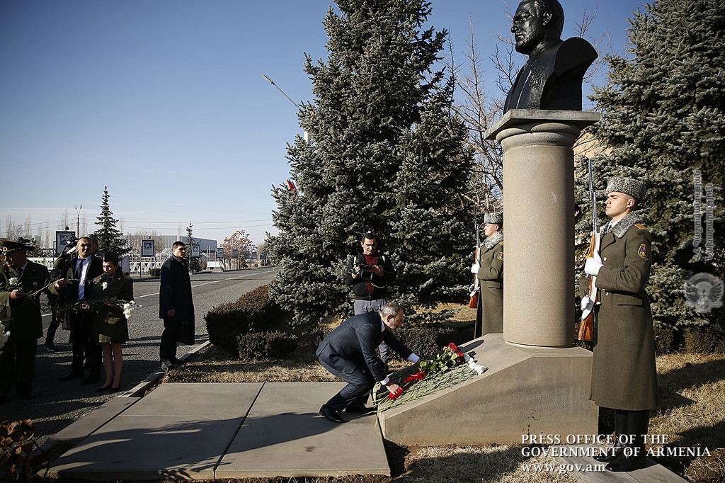 Այնուհետև վարչապետը ծաղիկներ է խոնարհել Վ. Սարգսյանի հուշարձանին՝ հարգանքի տուրք մատուցելով նրա հիշատակին: