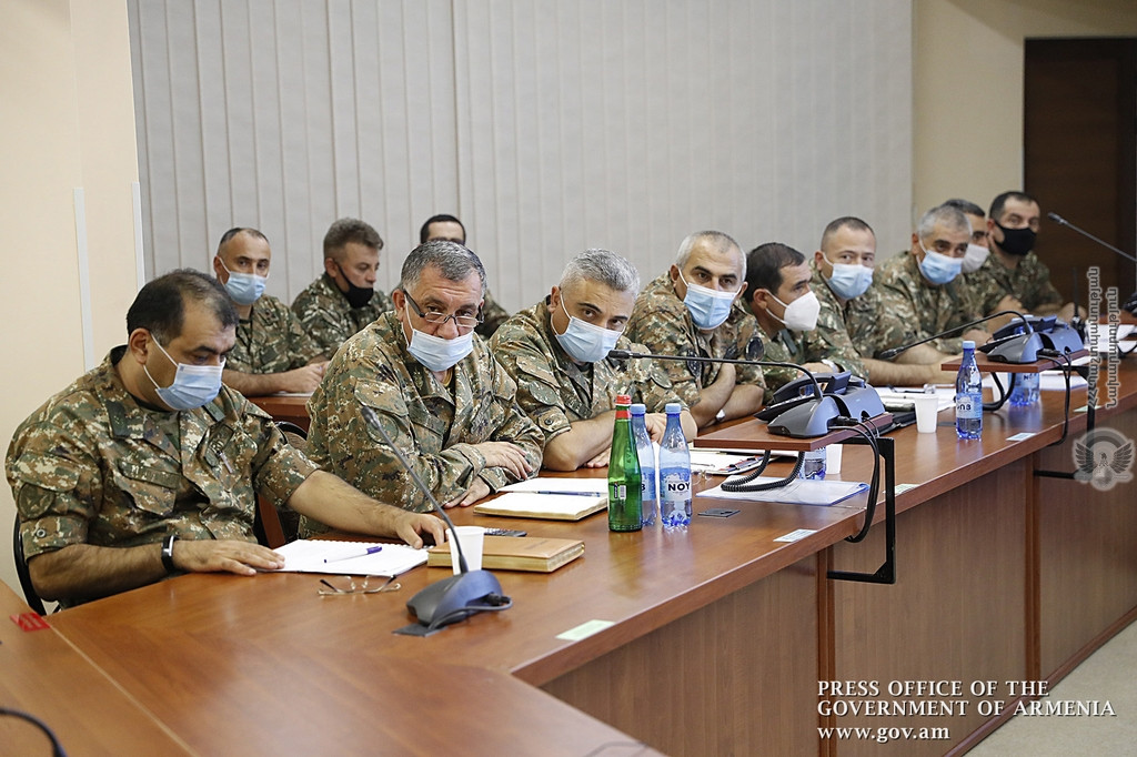 ՀՀ ԶՈՒ բարձրագույն սպայակազմը վարչապետին է ներկայացրել ղարաբաղա-ադրբեջանական սահմանագոտում հակառակորդի կողմից սանձազերծված ռազմական գործողությունների հետևանքով ստեղծված օպերատիվ իրավիճակը, հակառակորդի գործողությունները զսպելու ուղղությամբ հայկական զինուժի կողմից իրականացվող պատժիչ քայլերն ու համարժեք գործողությունները: