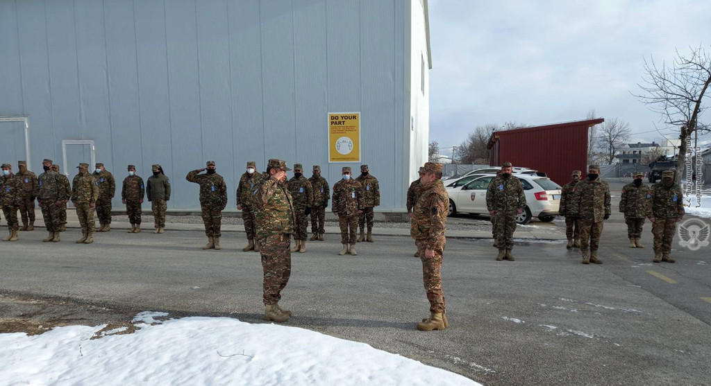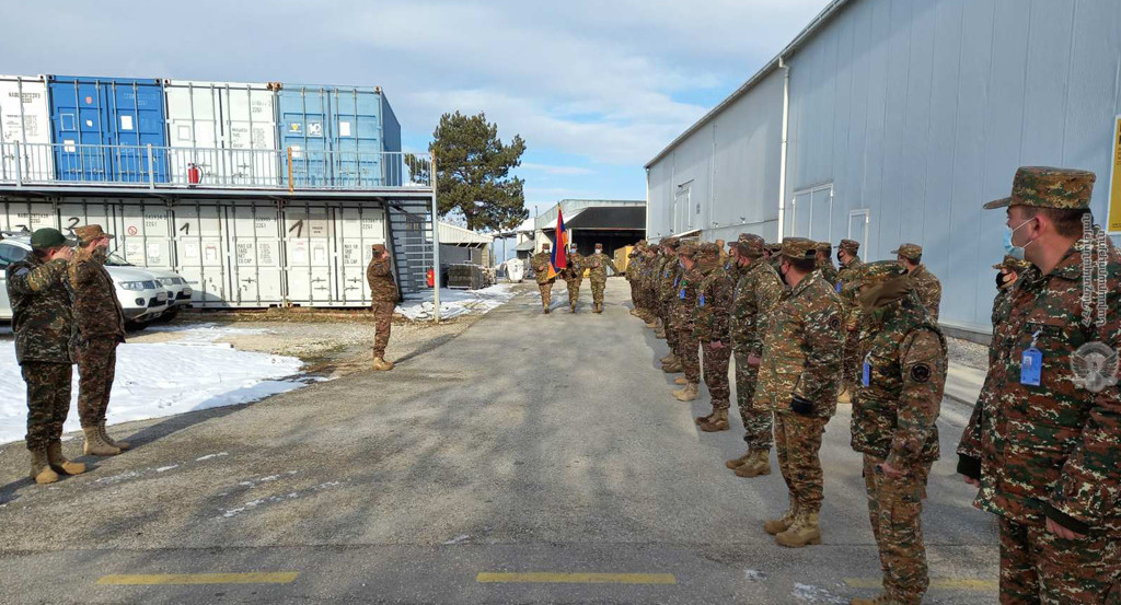 29 Հունվարի, 2021 17:38Հունվարի 28-ին, Հայոց բանակի կազմավորման 29-րդ տարեդարձի կապակցությամբ, Կոսովոյում խաղաղապահ առաքելություն իրականացնող հայկական զորախումբը, զորախմբի հրամանատար, ավագ լեյտենանտ Գագիկ Միքայելյանի և դասակի հրամանատար ավագ լեյտենանտ Արթուր Եղիազարյանի գլխավորությամբ, կազմակերպել է հանդիսավոր միջոցառում: