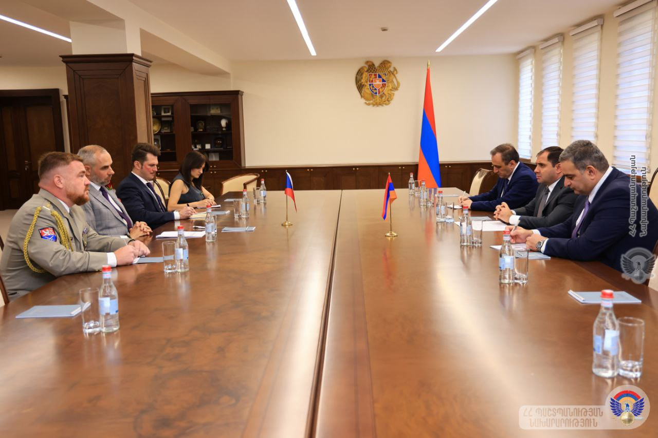 10 Октября, 2025 12:1510 октября министр обороны Республики Армения Сурен Папикян принял чрезвычайного и полномочного посла Чешской Республики в Армении Петра Пирунчика и новоназначенного военного и военно-воздушного атташе подполковника Жири Мрачека (резиденция – г. Тбилиси).