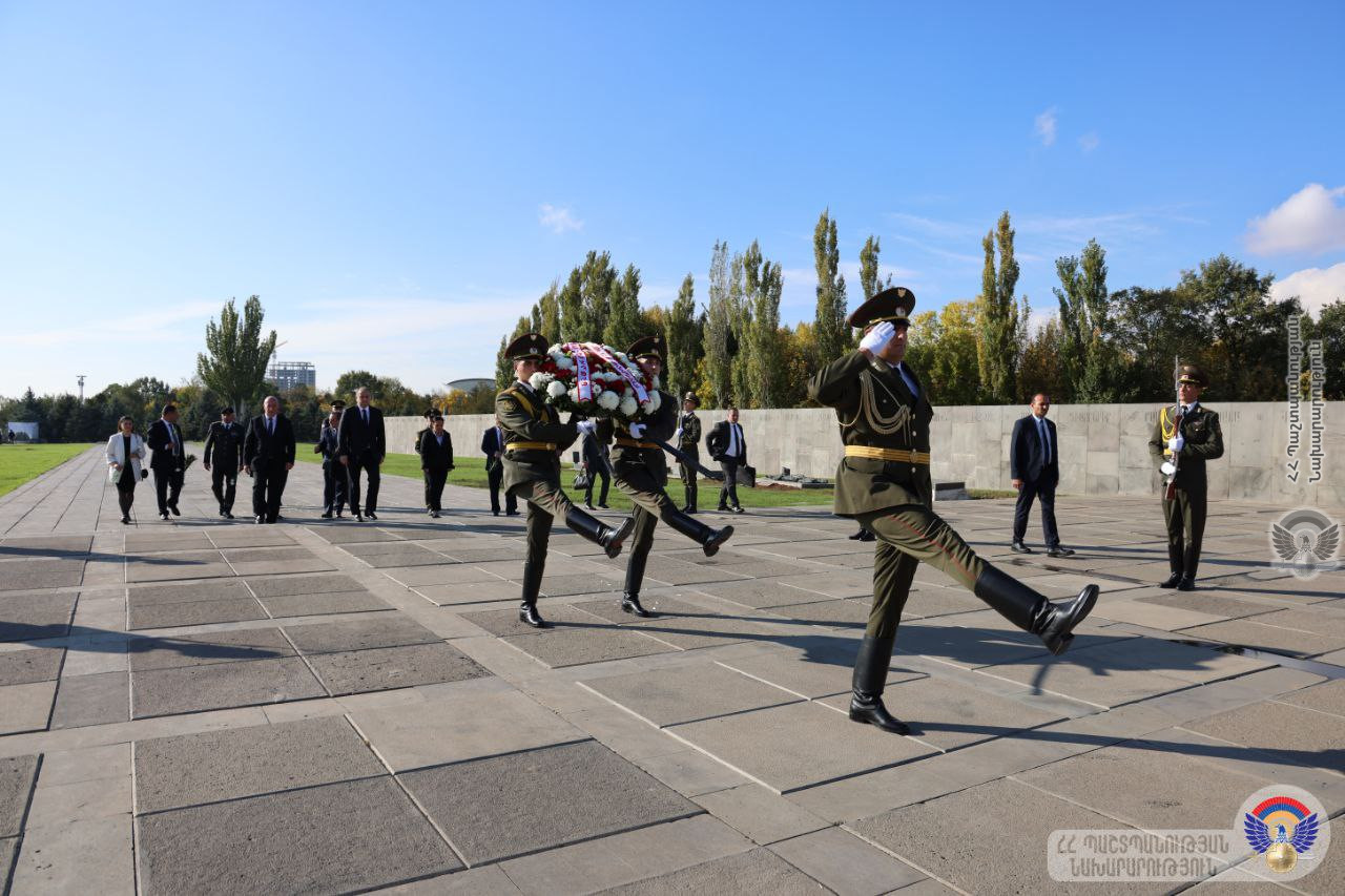 Министр Чиковани возложил венок к мемориалу и цветы к Вечному огню, увековечивающему память жертв Геноцида армян.